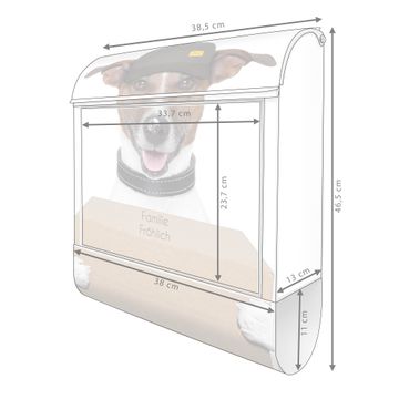 Der banjado Standbriefkasten mit Motiv Motiv Paketdienst Jack Russel kombiniert großzügigen Stauraum mit modernem Design. Durch das geräumige Fach finden auch große A4-Sendungen problemlos Platz. Die integrierte Zeitungsrolle sorgt dafür, dass Tageszeitungen und Magazine separat und griffbereit untergebracht sind. Der pulverbeschichtete Standfuß ist farblich passend zum Briefkasten gestaltet und sorgt für ein stimmiges Gesamtbild. Mit dem individuellen Motiv setzen Sie einen optischen Akzent, der sowohl praktisch als auch dekorativ ist.