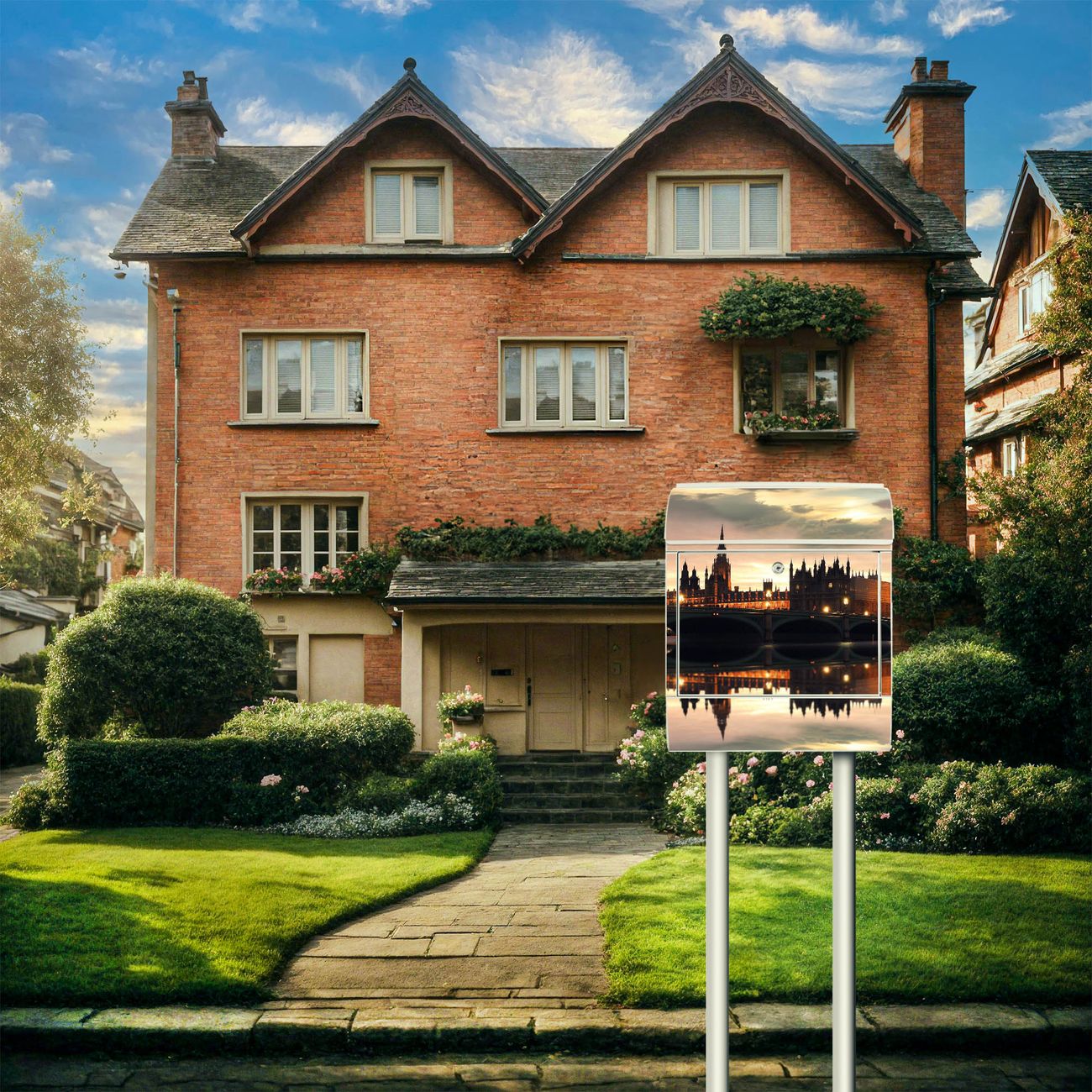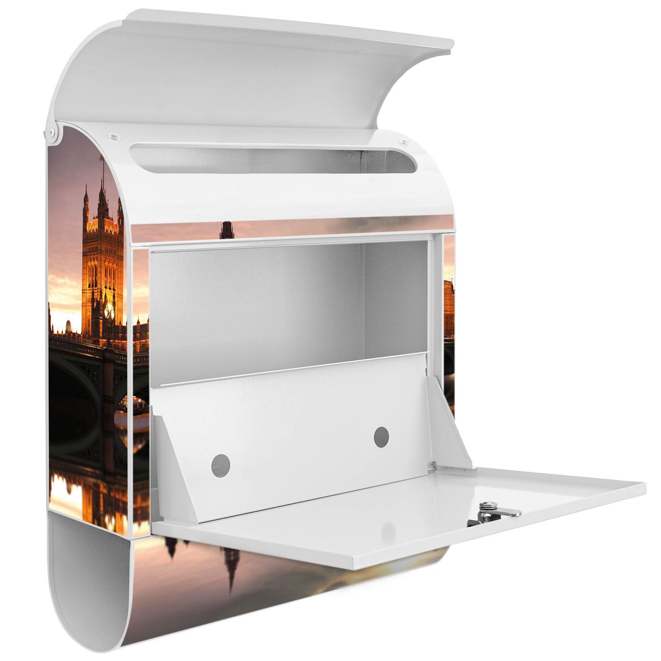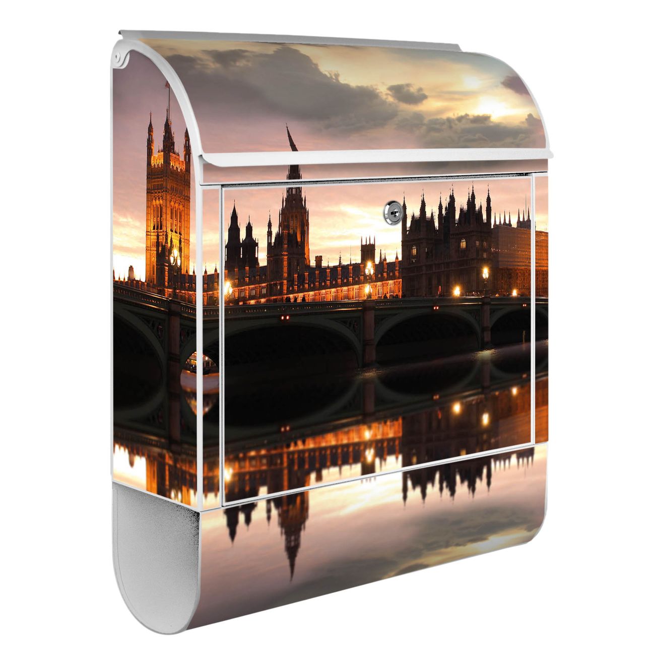 Der banjado Standbriefkasten mit Motiv Motiv Palace of Westminster kombiniert großzügigen Stauraum mit modernem Design. Durch das geräumige Fach finden auch große A4-Sendungen problemlos Platz. Die integrierte Zeitungsrolle sorgt dafür, dass Tageszeitungen und Magazine separat und griffbereit untergebracht sind. Der pulverbeschichtete Standfuß ist farblich passend zum Briefkasten gestaltet und sorgt für ein stimmiges Gesamtbild. Mit dem individuellen Motiv setzen Sie einen optischen Akzent, der sowohl praktisch als auch dekorativ ist.