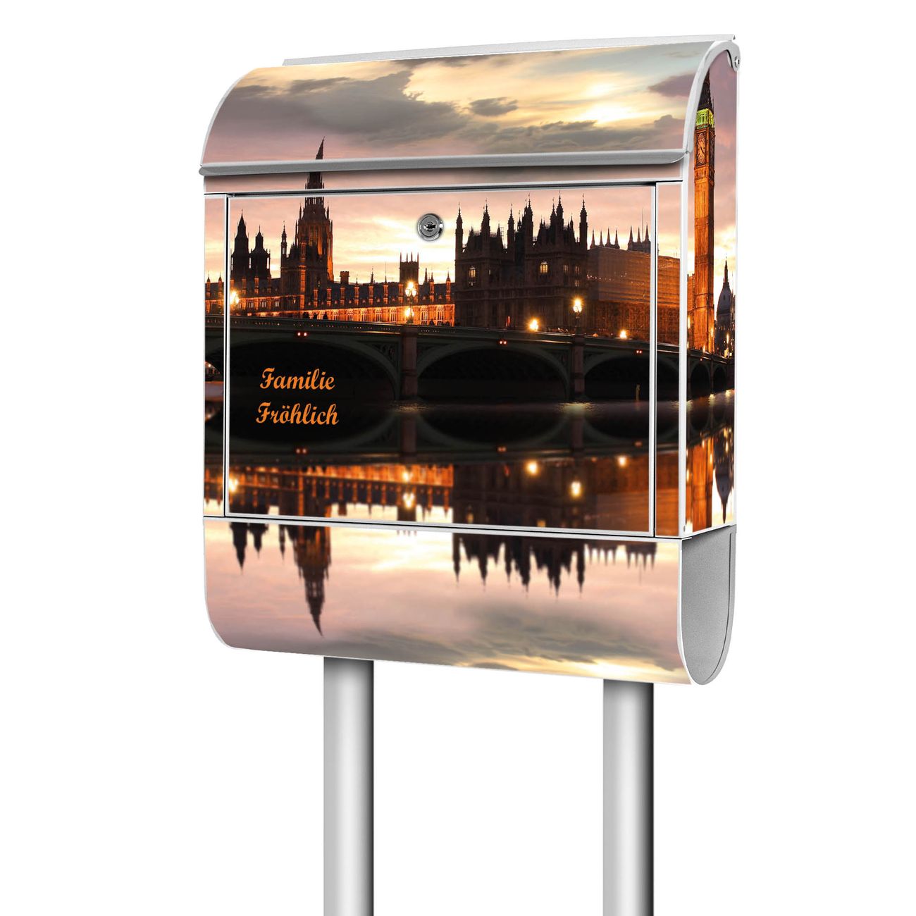 Der Standbriefkasten besteht aus pulverbeschichtetem Stahl und ist insgesamt ca. 161,5 x 47 x 16 cm groß. Das Motiv wird auf eine wetter- und UV-beständige Folie aufgebracht und mit einem robusten Schutzlaminat versiegelt. Damit bleibt die Farbbrillanz auch bei Sonne und Regen lange erhalten. Für einen sicheren Halt empfehlen wir, den Standbriefkasten mindestens 15 cm einzubetonieren. Jeder Briefkasten wird in Sachsen in einer kleinen Manufaktur von Hand veredelt - Sie erhalten ein Stück langlebige Handarbeit, das Funktionalität und Design vereint.