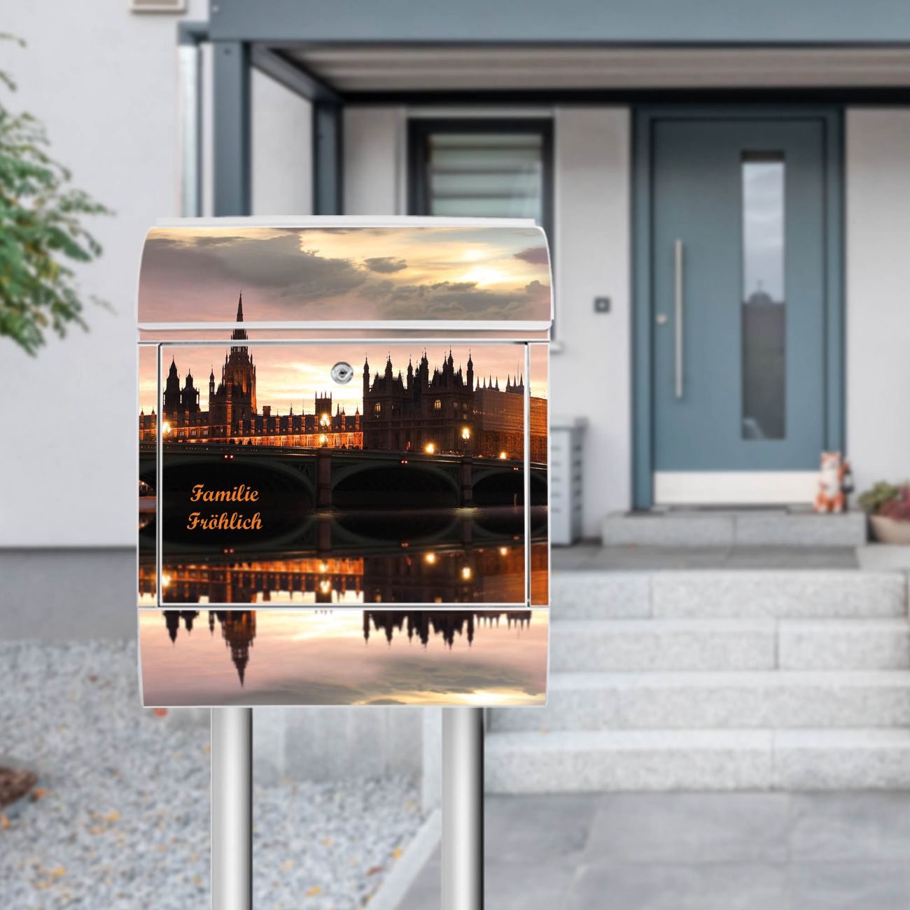 Der banjado Standbriefkasten mit Motiv Motiv Palace of Westminster kombiniert großzügigen Stauraum mit modernem Design. Durch das geräumige Fach finden auch große A4-Sendungen problemlos Platz. Die integrierte Zeitungsrolle sorgt dafür, dass Tageszeitungen und Magazine separat und griffbereit untergebracht sind. Der pulverbeschichtete Standfuß ist farblich passend zum Briefkasten gestaltet und sorgt für ein stimmiges Gesamtbild. Mit dem individuellen Motiv setzen Sie einen optischen Akzent, der sowohl praktisch als auch dekorativ ist.