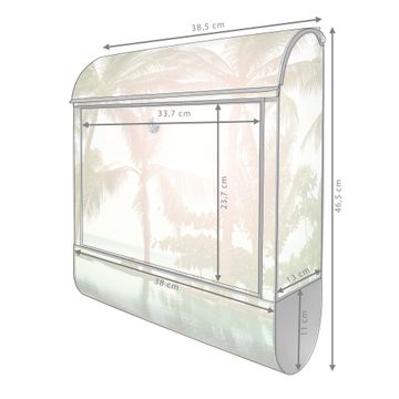 Der banjado Standbriefkasten mit Motiv Motiv Palmen kombiniert großzügigen Stauraum mit modernem Design. Durch das geräumige Fach finden auch große A4-Sendungen problemlos Platz. Die integrierte Zeitungsrolle sorgt dafür, dass Tageszeitungen und Magazine separat und griffbereit untergebracht sind. Der pulverbeschichtete Standfuß ist farblich passend zum Briefkasten gestaltet und sorgt für ein stimmiges Gesamtbild. Mit dem individuellen Motiv setzen Sie einen optischen Akzent, der sowohl praktisch als auch dekorativ ist.