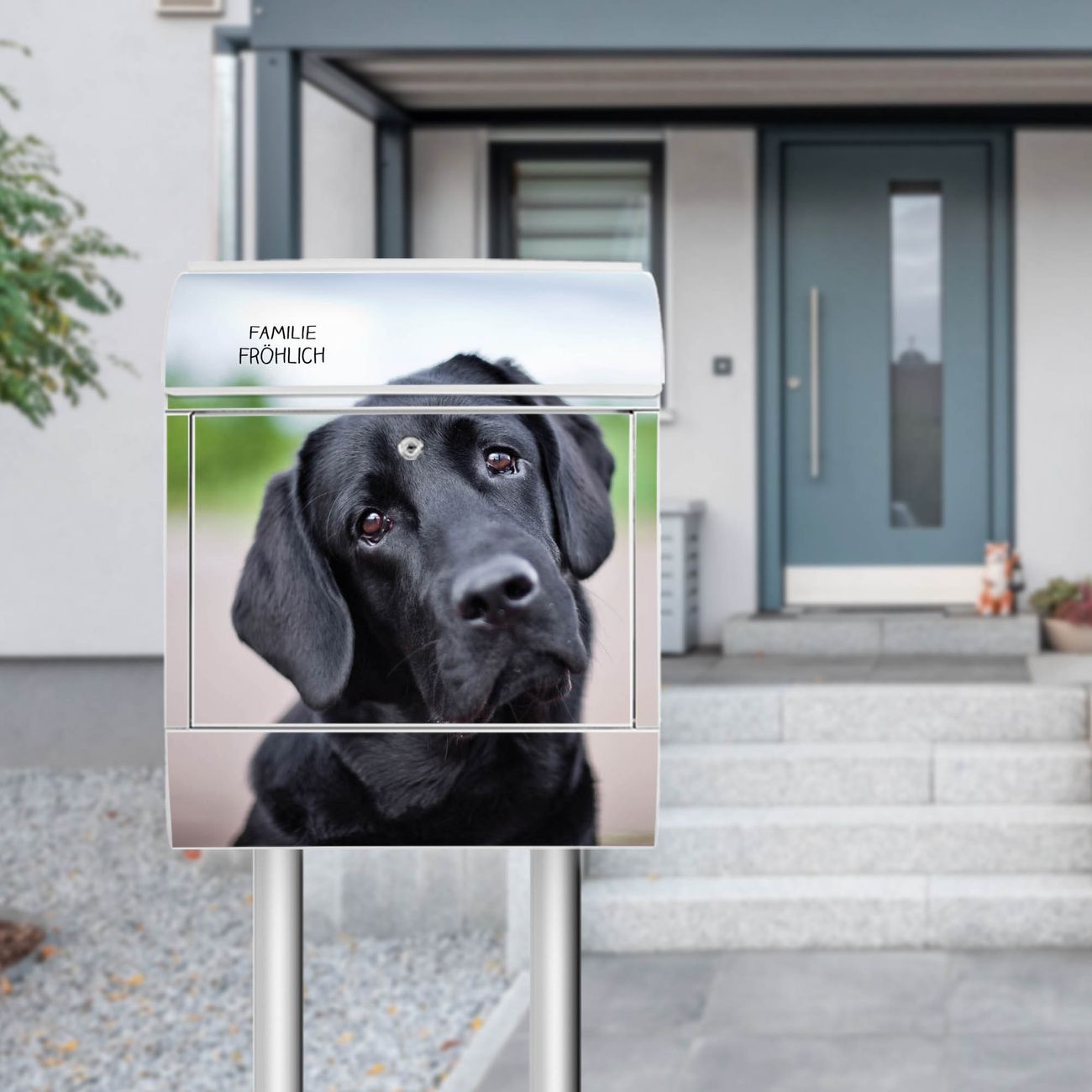 Der Vorschau-Text Familie Fröhlich wird durch Ihren persönlichen Wunschtext ersetzt. Die Schriftart und Farbe bleiben gleich wie in der Vorschau.