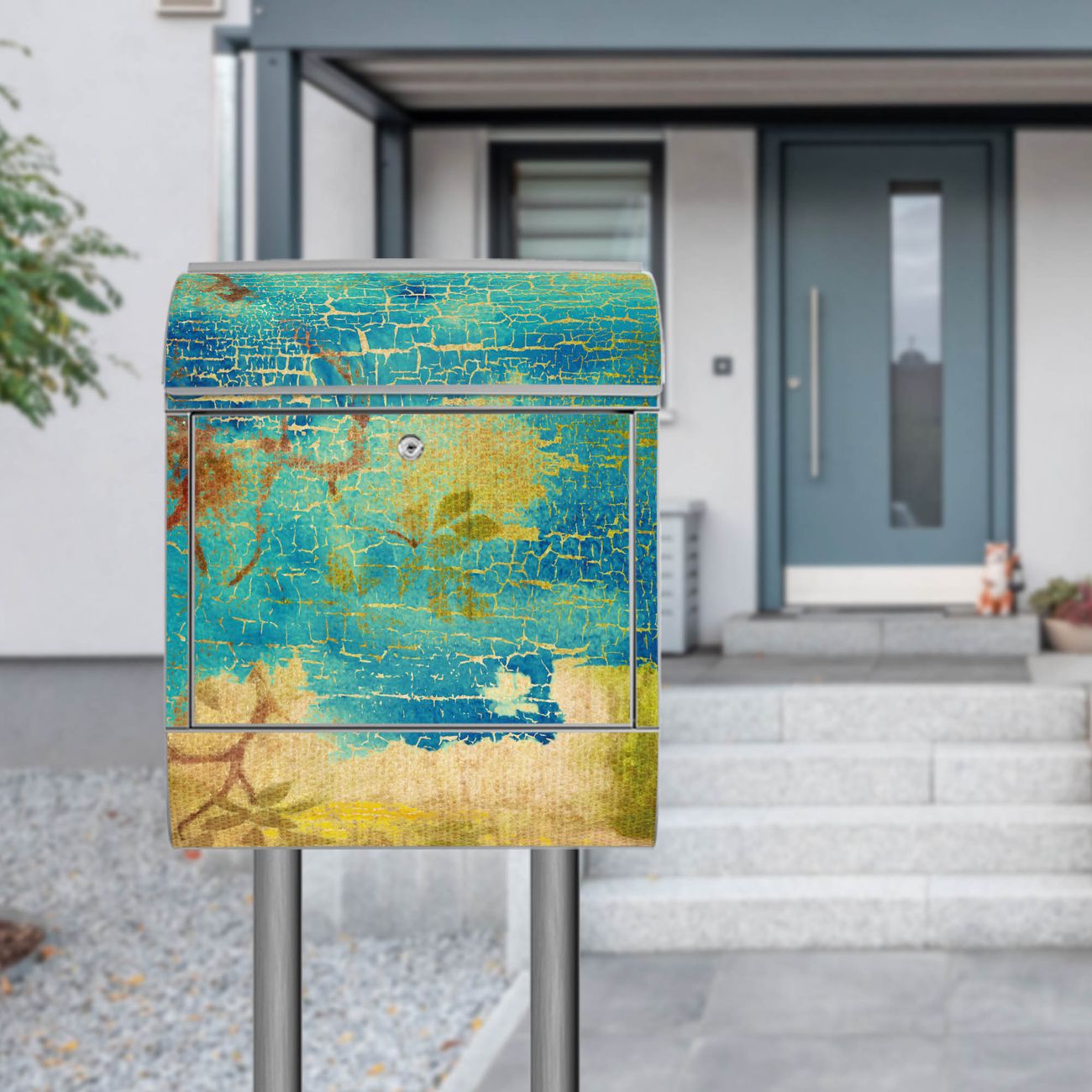 Der banjado Standbriefkasten mit Motiv Motiv Patina kombiniert großzügigen Stauraum mit modernem Design. Durch das geräumige Fach finden auch große A4-Sendungen problemlos Platz. Die integrierte Zeitungsrolle sorgt dafür, dass Tageszeitungen und Magazine separat und griffbereit untergebracht sind. Der pulverbeschichtete Standfuß ist farblich passend zum Briefkasten gestaltet und sorgt für ein stimmiges Gesamtbild. Mit dem individuellen Motiv setzen Sie einen optischen Akzent, der sowohl praktisch als auch dekorativ ist.