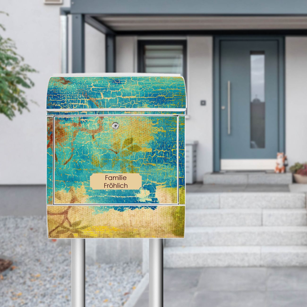 Der Standbriefkasten besteht aus pulverbeschichtetem Stahl und ist insgesamt ca. 161,5 x 47 x 16 cm groß. Das Motiv wird auf eine wetter- und UV-beständige Folie aufgebracht und mit einem robusten Schutzlaminat versiegelt. Damit bleibt die Farbbrillanz auch bei Sonne und Regen lange erhalten. Für einen sicheren Halt empfehlen wir, den Standbriefkasten mindestens 15 cm einzubetonieren. Jeder Briefkasten wird in Sachsen in einer kleinen Manufaktur von Hand veredelt - Sie erhalten ein Stück langlebige Handarbeit, das Funktionalität und Design vereint.