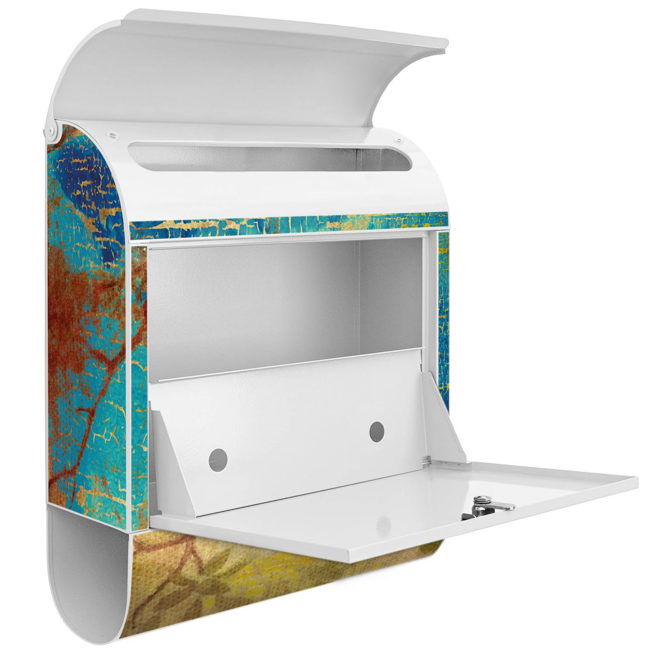 Der banjado Standbriefkasten mit Motiv Motiv Patina kombiniert großzügigen Stauraum mit modernem Design. Durch das geräumige Fach finden auch große A4-Sendungen problemlos Platz. Die integrierte Zeitungsrolle sorgt dafür, dass Tageszeitungen und Magazine separat und griffbereit untergebracht sind. Der pulverbeschichtete Standfuß ist farblich passend zum Briefkasten gestaltet und sorgt für ein stimmiges Gesamtbild. Mit dem individuellen Motiv setzen Sie einen optischen Akzent, der sowohl praktisch als auch dekorativ ist.
