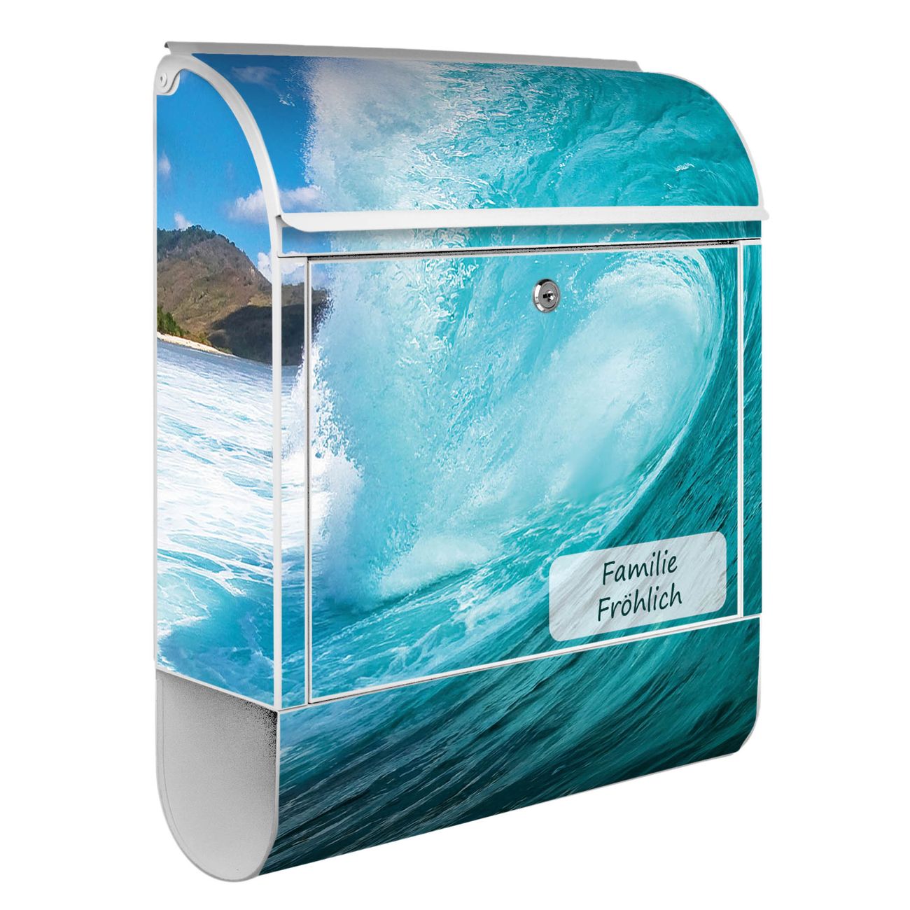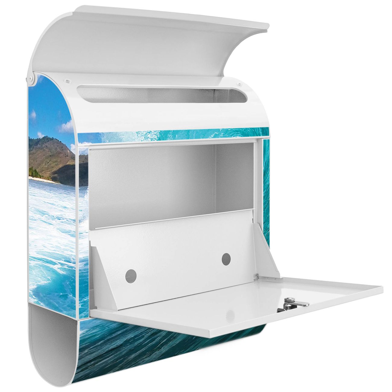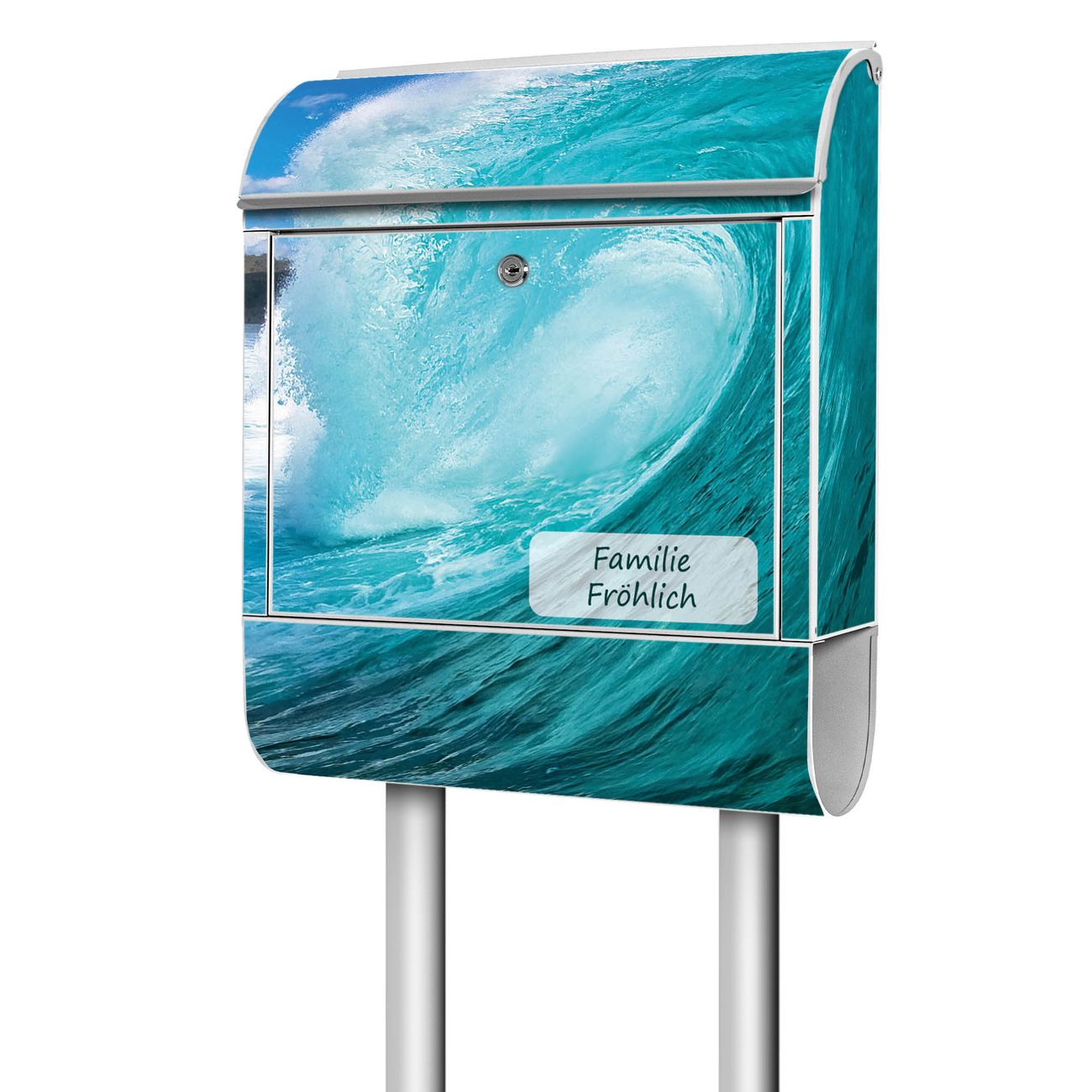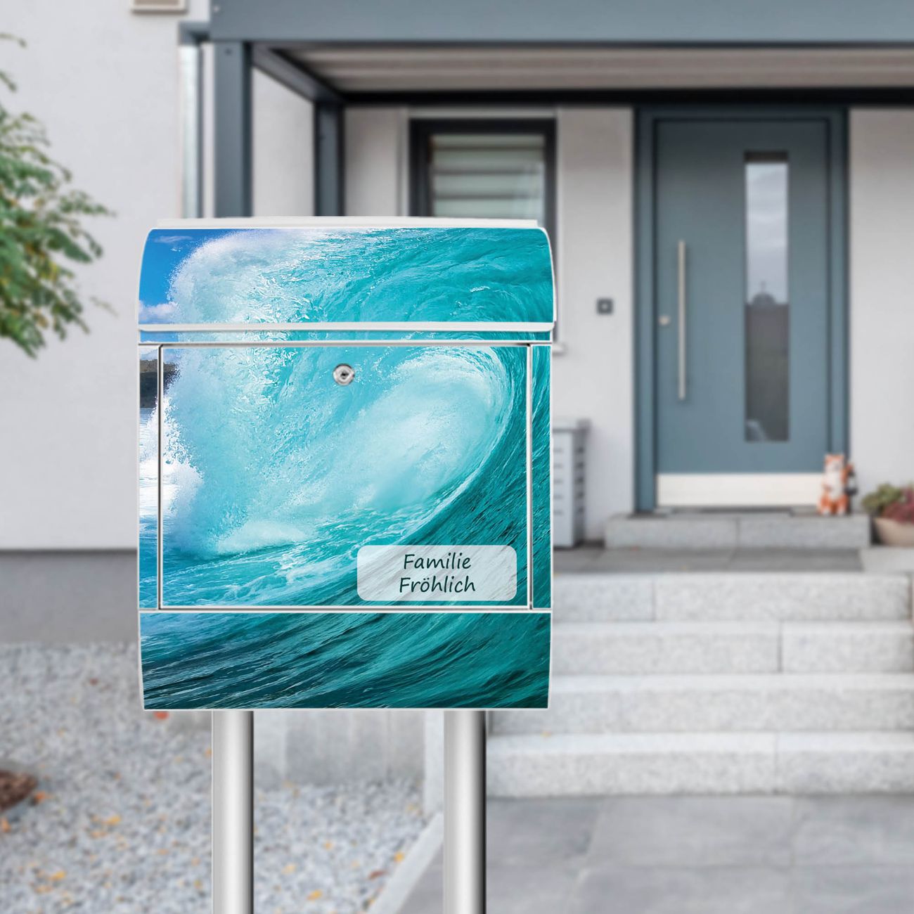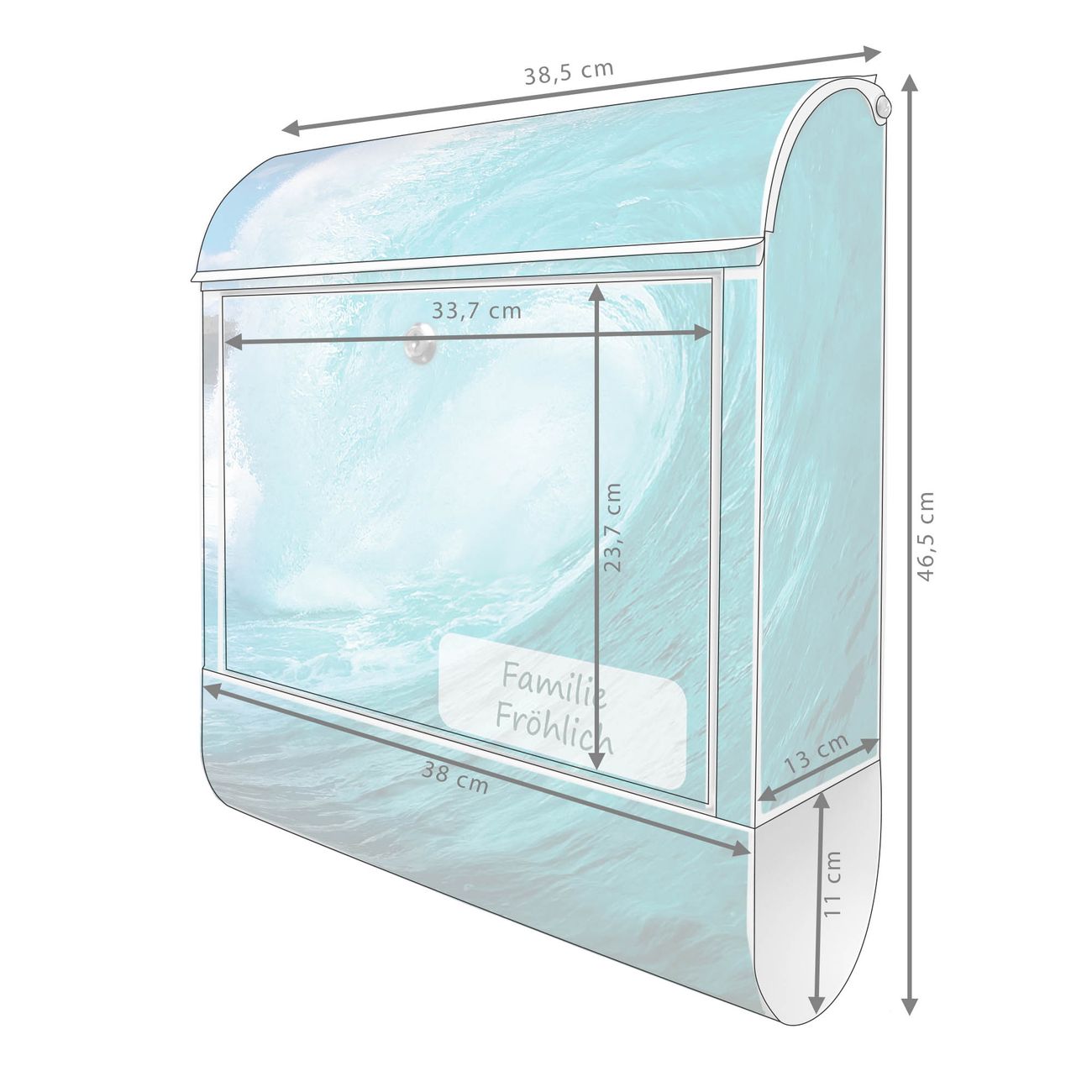 Der banjado Standbriefkasten mit Motiv Motiv Perfekte Welle kombiniert großzügigen Stauraum mit modernem Design. Durch das geräumige Fach finden auch große A4-Sendungen problemlos Platz. Die integrierte Zeitungsrolle sorgt dafür, dass Tageszeitungen und Magazine separat und griffbereit untergebracht sind. Der pulverbeschichtete Standfuß ist farblich passend zum Briefkasten gestaltet und sorgt für ein stimmiges Gesamtbild. Mit dem individuellen Motiv setzen Sie einen optischen Akzent, der sowohl praktisch als auch dekorativ ist.