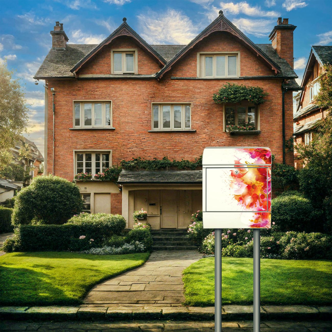 Der Standbriefkasten besteht aus pulverbeschichtetem Stahl und ist insgesamt ca. 161,5 x 47 x 16 cm groß. Das Motiv wird auf eine wetter- und UV-beständige Folie aufgebracht und mit einem robusten Schutzlaminat versiegelt. Damit bleibt die Farbbrillanz auch bei Sonne und Regen lange erhalten. Für einen sicheren Halt empfehlen wir, den Standbriefkasten mindestens 15 cm einzubetonieren. Jeder Briefkasten wird in Sachsen in einer kleinen Manufaktur von Hand veredelt - Sie erhalten ein Stück langlebige Handarbeit, das Funktionalität und Design vereint.