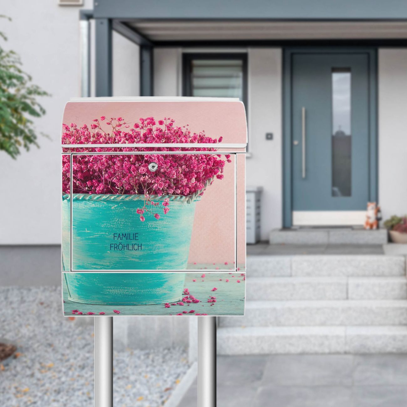 Standbriefkasten Stahl Pinke Trockenblumen