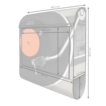 Der banjado Standbriefkasten mit Motiv Motiv Plattenspieler kombiniert großzügigen Stauraum mit modernem Design. Durch das geräumige Fach finden auch große A4-Sendungen problemlos Platz. Die integrierte Zeitungsrolle sorgt dafür, dass Tageszeitungen und Magazine separat und griffbereit untergebracht sind. Der pulverbeschichtete Standfuß ist farblich passend zum Briefkasten gestaltet und sorgt für ein stimmiges Gesamtbild. Mit dem individuellen Motiv setzen Sie einen optischen Akzent, der sowohl praktisch als auch dekorativ ist.