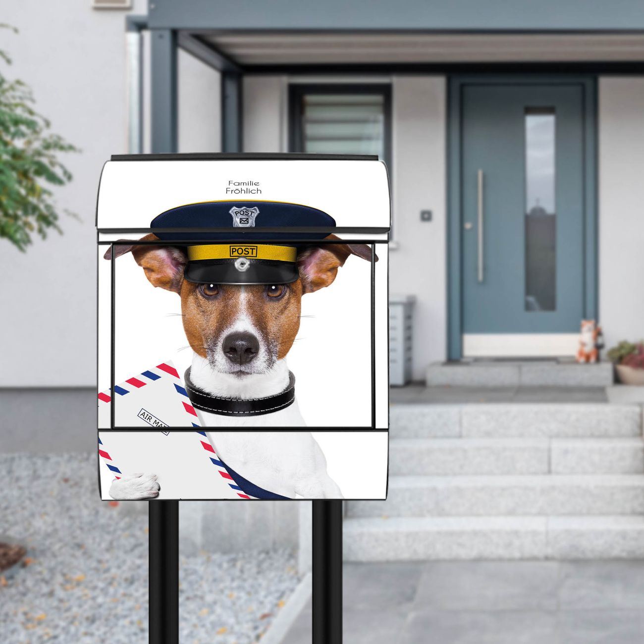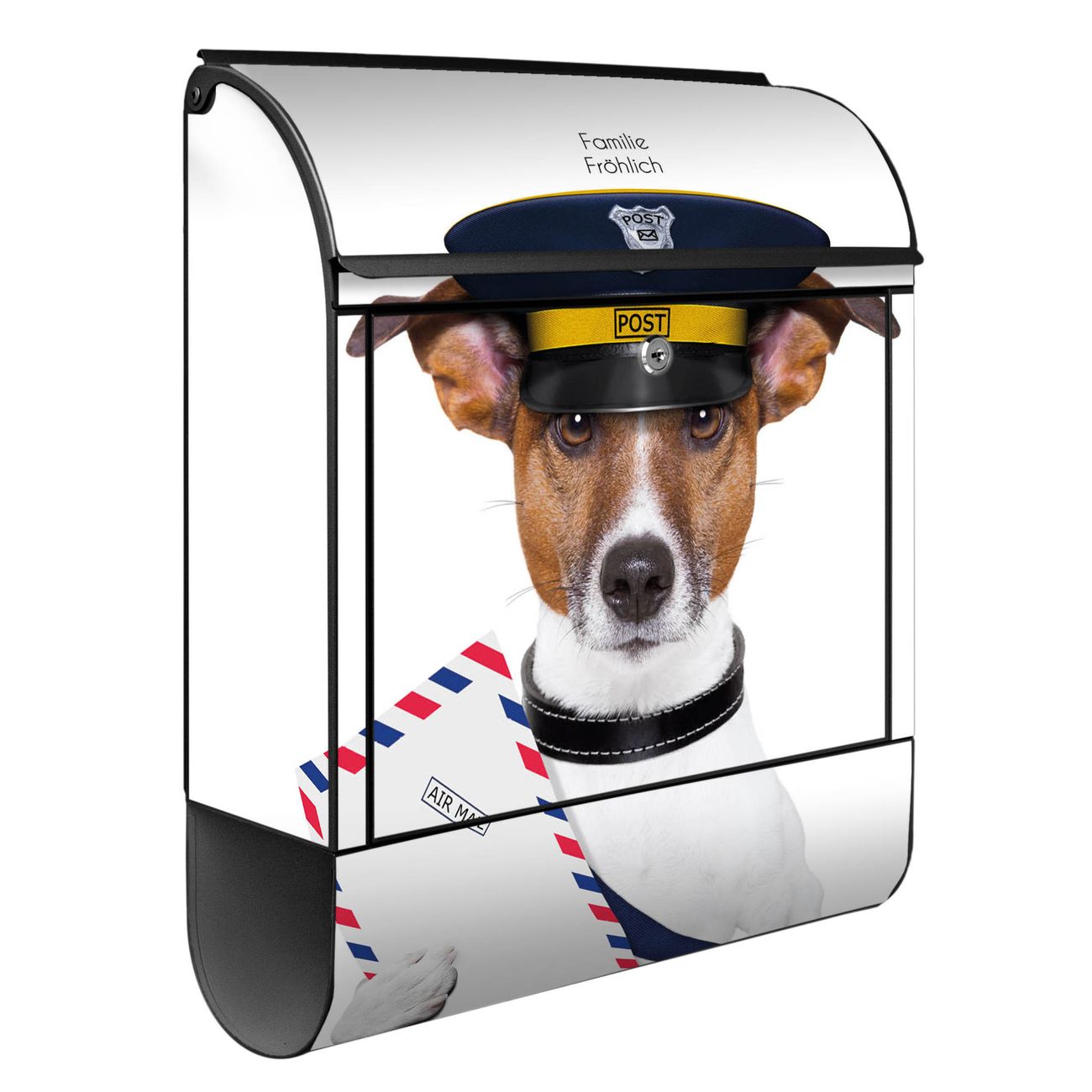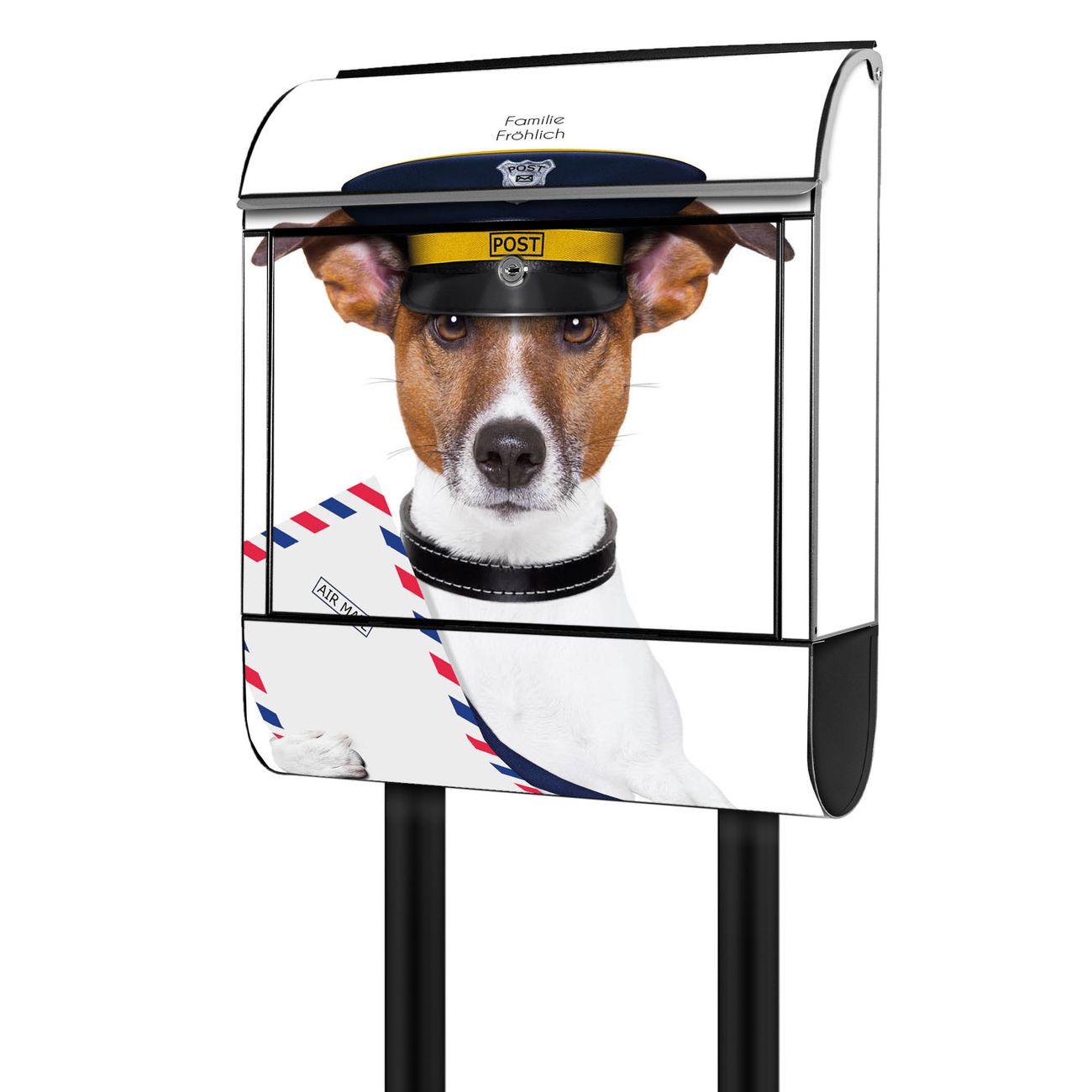 Standbriefkasten Stahl Postbote Jack Russel