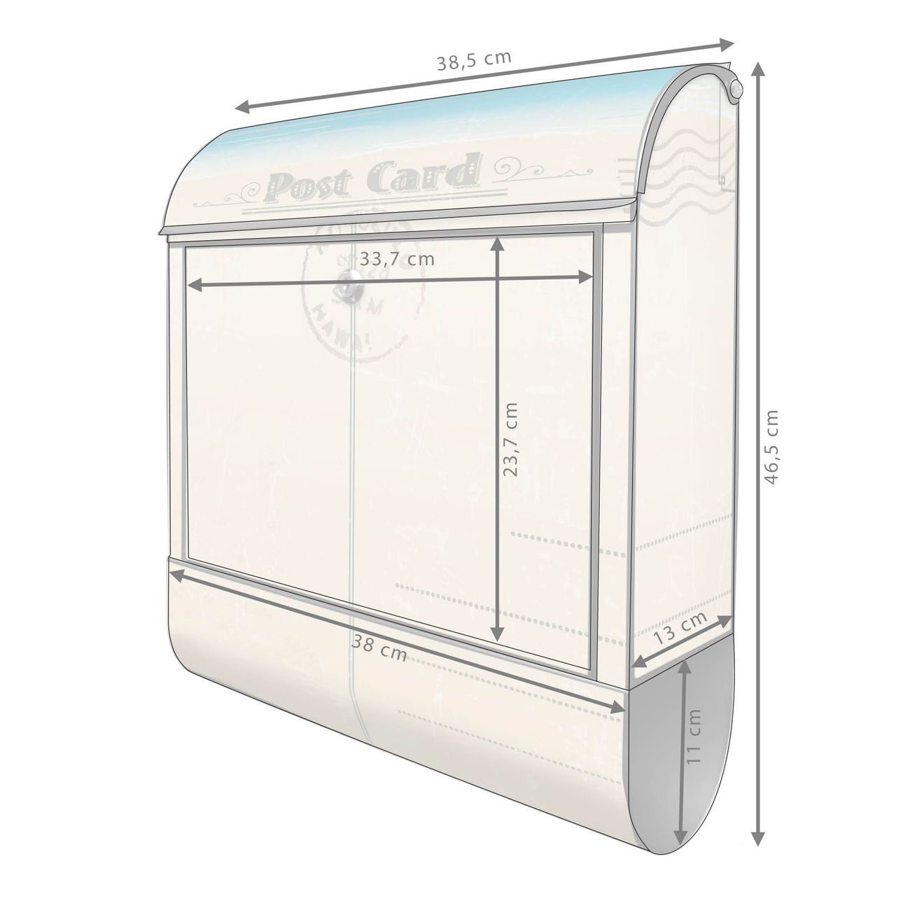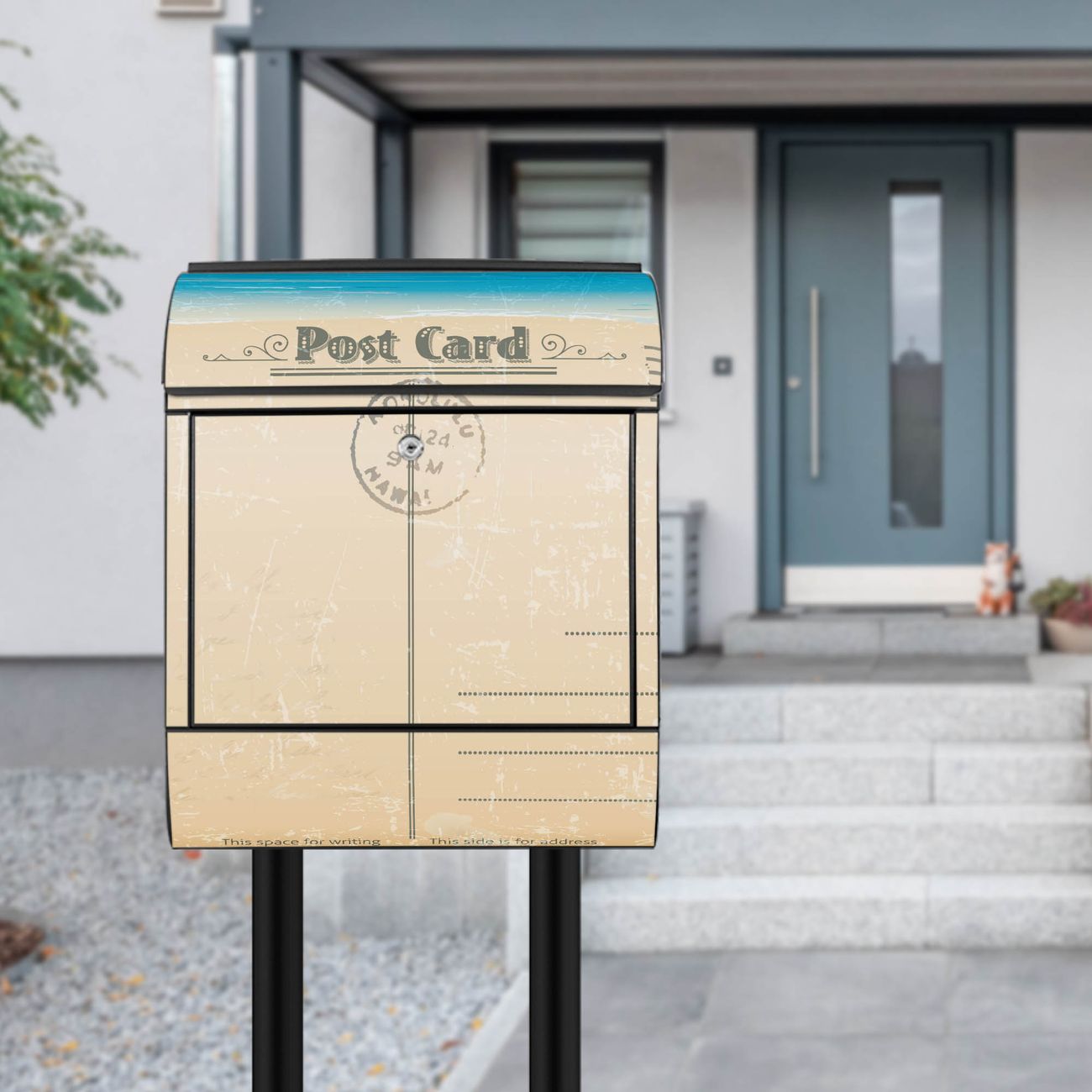 Der banjado Standbriefkasten mit Motiv Motiv Postkarte kombiniert großzügigen Stauraum mit modernem Design. Durch das geräumige Fach finden auch große A4-Sendungen problemlos Platz. Die integrierte Zeitungsrolle sorgt dafür, dass Tageszeitungen und Magazine separat und griffbereit untergebracht sind. Der pulverbeschichtete Standfuß ist farblich passend zum Briefkasten gestaltet und sorgt für ein stimmiges Gesamtbild. Mit dem individuellen Motiv setzen Sie einen optischen Akzent, der sowohl praktisch als auch dekorativ ist.