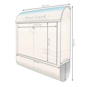 Der banjado Standbriefkasten mit Motiv Motiv Postkarte kombiniert großzügigen Stauraum mit modernem Design. Durch das geräumige Fach finden auch große A4-Sendungen problemlos Platz. Die integrierte Zeitungsrolle sorgt dafür, dass Tageszeitungen und Magazine separat und griffbereit untergebracht sind. Der pulverbeschichtete Standfuß ist farblich passend zum Briefkasten gestaltet und sorgt für ein stimmiges Gesamtbild. Mit dem individuellen Motiv setzen Sie einen optischen Akzent, der sowohl praktisch als auch dekorativ ist.