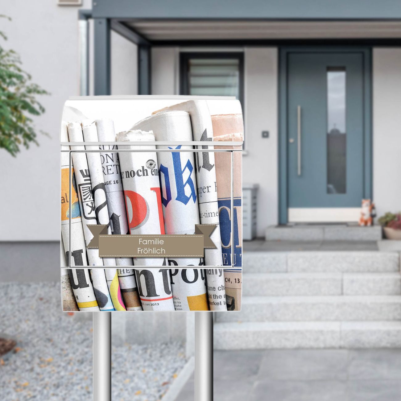 Der banjado Standbriefkasten mit Motiv Motiv Presse kombiniert großzügigen Stauraum mit modernem Design. Durch das geräumige Fach finden auch große A4-Sendungen problemlos Platz. Die integrierte Zeitungsrolle sorgt dafür, dass Tageszeitungen und Magazine separat und griffbereit untergebracht sind. Der pulverbeschichtete Standfuß ist farblich passend zum Briefkasten gestaltet und sorgt für ein stimmiges Gesamtbild. Mit dem individuellen Motiv setzen Sie einen optischen Akzent, der sowohl praktisch als auch dekorativ ist.