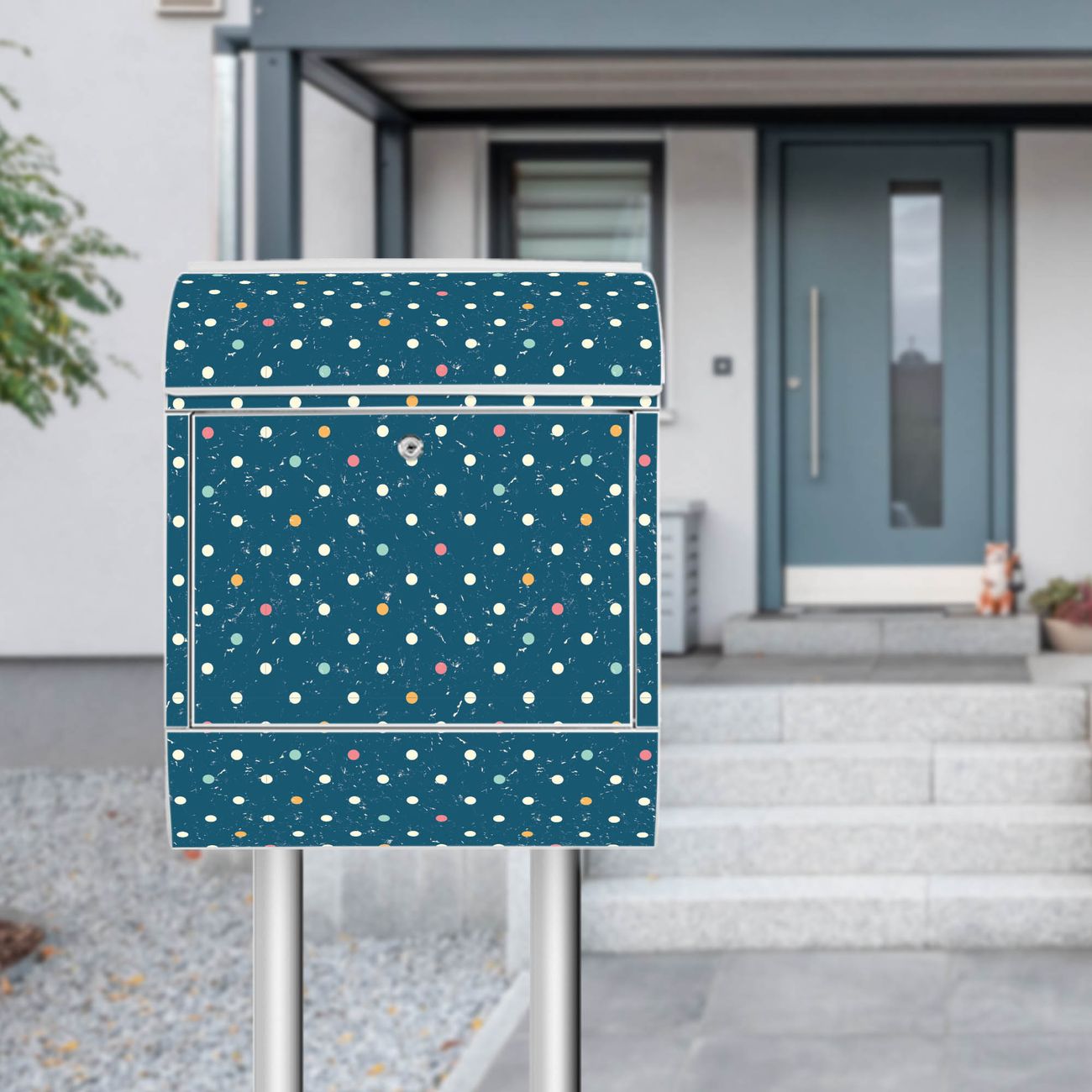 Standbriefkasten Stahl Punkte auf Blau