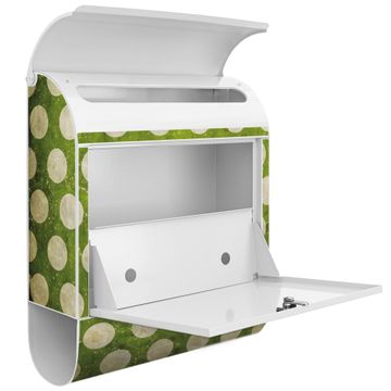 Der banjado Standbriefkasten mit Motiv Motiv Punkte Grün Vintage kombiniert großzügigen Stauraum mit modernem Design. Durch das geräumige Fach finden auch große A4-Sendungen problemlos Platz. Die integrierte Zeitungsrolle sorgt dafür, dass Tageszeitungen und Magazine separat und griffbereit untergebracht sind. Der pulverbeschichtete Standfuß ist farblich passend zum Briefkasten gestaltet und sorgt für ein stimmiges Gesamtbild. Mit dem individuellen Motiv setzen Sie einen optischen Akzent, der sowohl praktisch als auch dekorativ ist.
