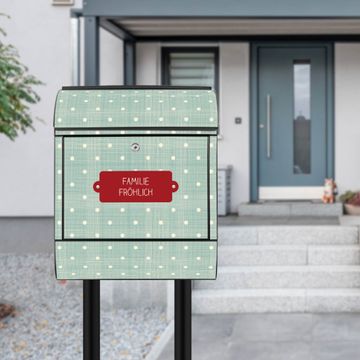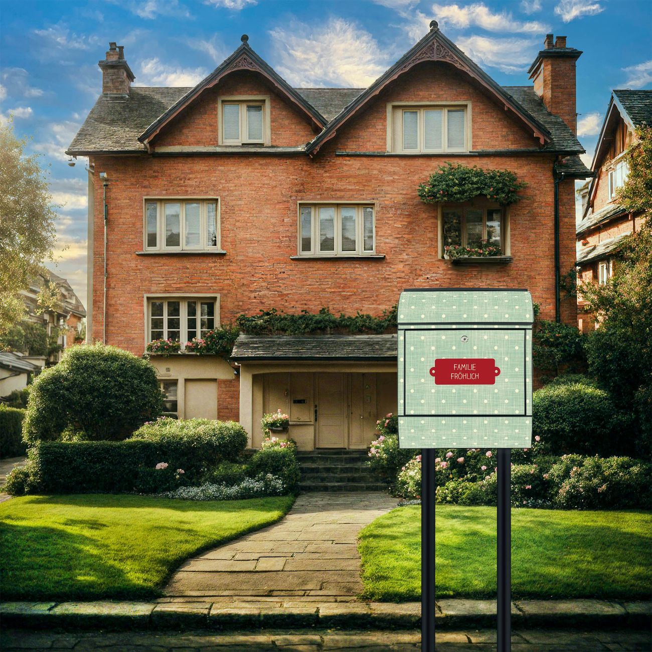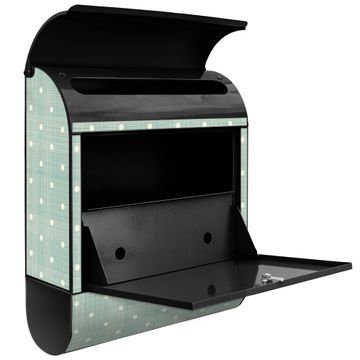 Der banjado Standbriefkasten mit Motiv Motiv Punkte Lindgrün kombiniert großzügigen Stauraum mit modernem Design. Durch das geräumige Fach finden auch große A4-Sendungen problemlos Platz. Die integrierte Zeitungsrolle sorgt dafür, dass Tageszeitungen und Magazine separat und griffbereit untergebracht sind. Der pulverbeschichtete Standfuß ist farblich passend zum Briefkasten gestaltet und sorgt für ein stimmiges Gesamtbild. Mit dem individuellen Motiv setzen Sie einen optischen Akzent, der sowohl praktisch als auch dekorativ ist.