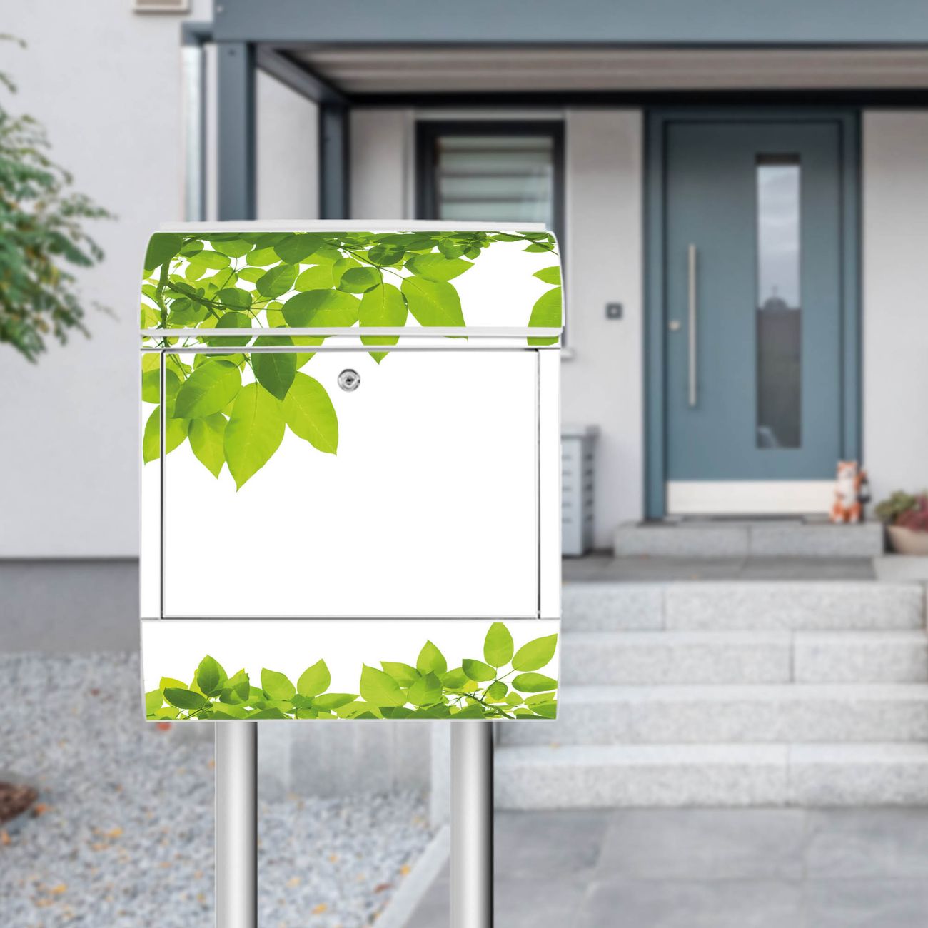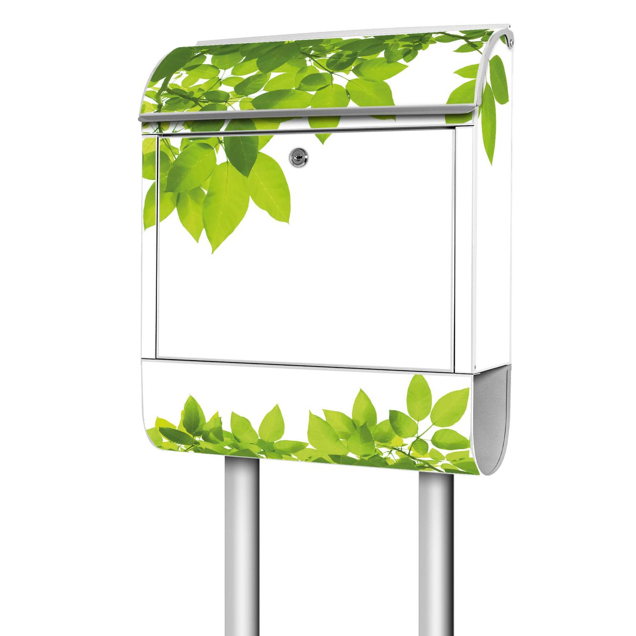 Der banjado Standbriefkasten mit Motiv Motiv Rahmen Blätter kombiniert großzügigen Stauraum mit modernem Design. Durch das geräumige Fach finden auch große A4-Sendungen problemlos Platz. Die integrierte Zeitungsrolle sorgt dafür, dass Tageszeitungen und Magazine separat und griffbereit untergebracht sind. Der pulverbeschichtete Standfuß ist farblich passend zum Briefkasten gestaltet und sorgt für ein stimmiges Gesamtbild. Mit dem individuellen Motiv setzen Sie einen optischen Akzent, der sowohl praktisch als auch dekorativ ist.