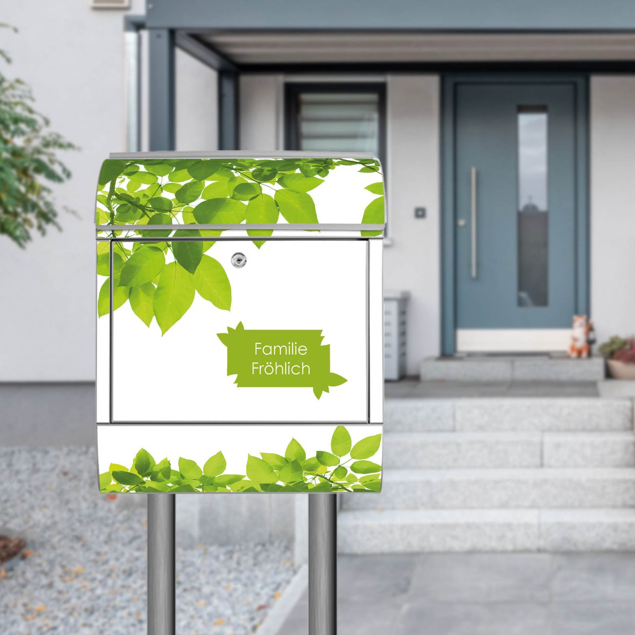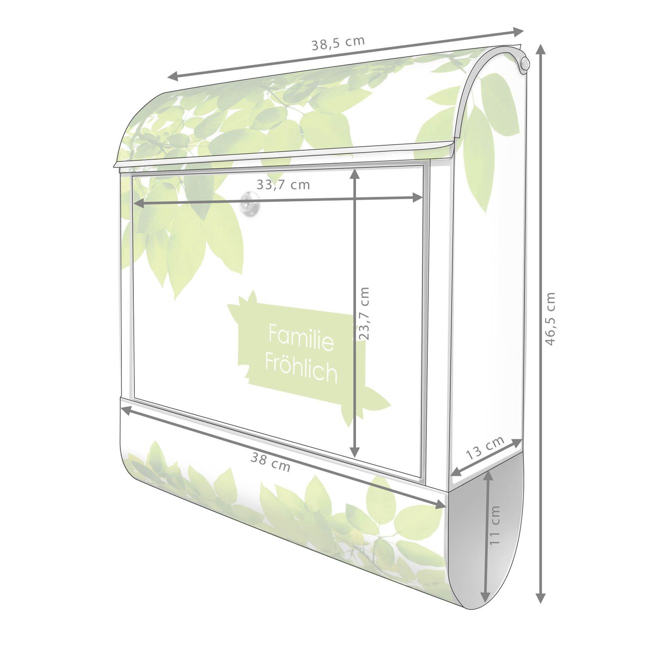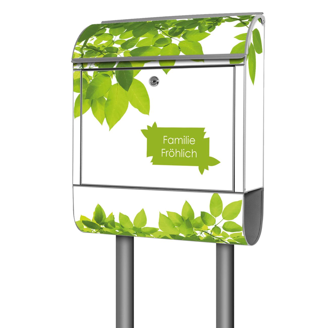Der banjado Standbriefkasten mit Motiv Motiv Rahmen Blätter kombiniert großzügigen Stauraum mit modernem Design. Durch das geräumige Fach finden auch große A4-Sendungen problemlos Platz. Die integrierte Zeitungsrolle sorgt dafür, dass Tageszeitungen und Magazine separat und griffbereit untergebracht sind. Der pulverbeschichtete Standfuß ist farblich passend zum Briefkasten gestaltet und sorgt für ein stimmiges Gesamtbild. Mit dem individuellen Motiv setzen Sie einen optischen Akzent, der sowohl praktisch als auch dekorativ ist.