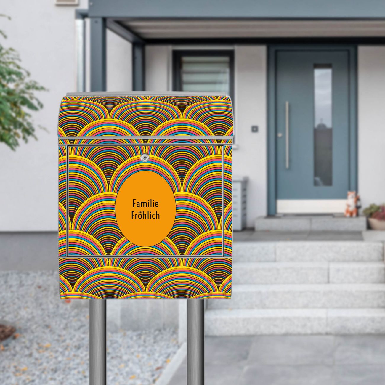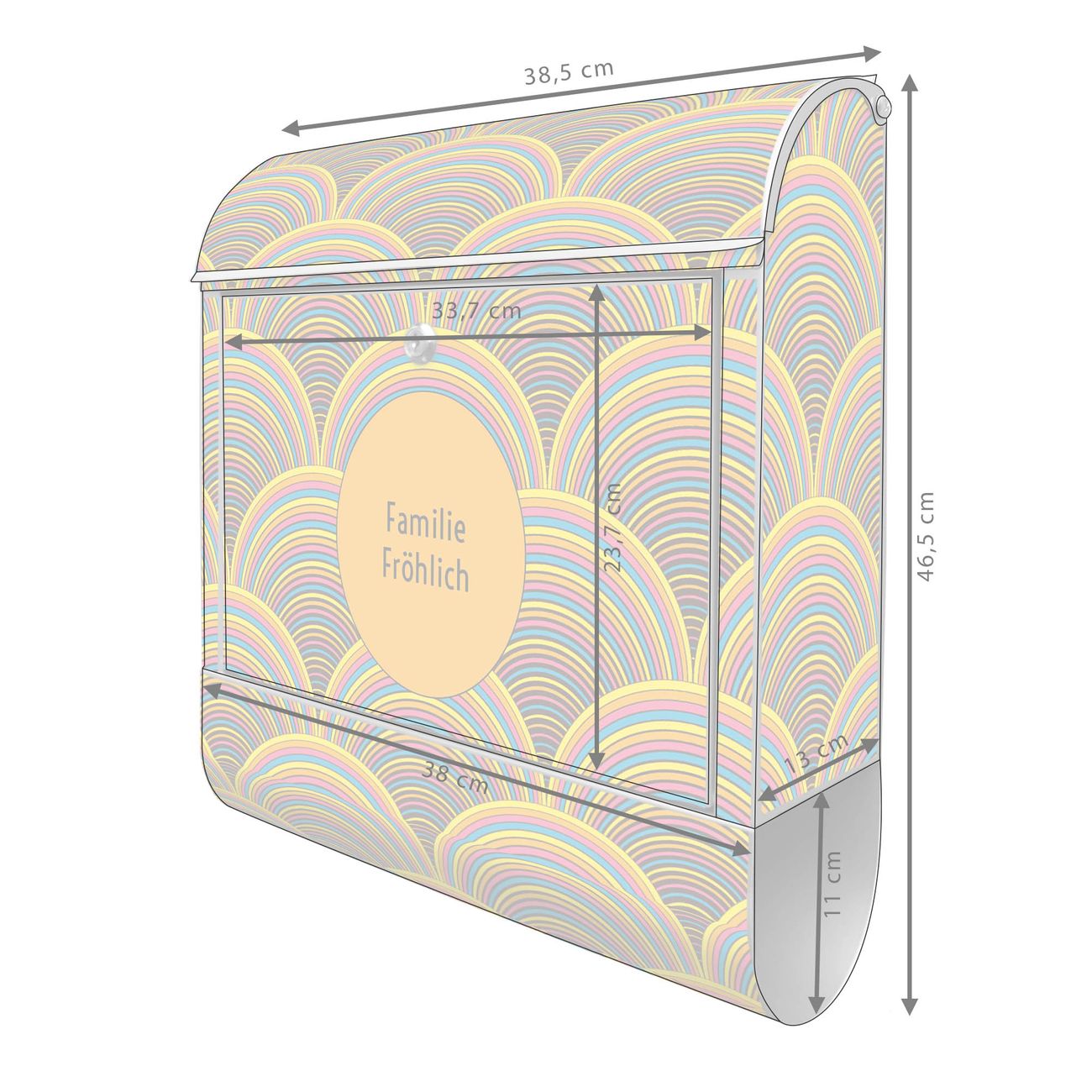Der banjado Standbriefkasten mit Motiv Motiv Regenbögen kombiniert großzügigen Stauraum mit modernem Design. Durch das geräumige Fach finden auch große A4-Sendungen problemlos Platz. Die integrierte Zeitungsrolle sorgt dafür, dass Tageszeitungen und Magazine separat und griffbereit untergebracht sind. Der pulverbeschichtete Standfuß ist farblich passend zum Briefkasten gestaltet und sorgt für ein stimmiges Gesamtbild. Mit dem individuellen Motiv setzen Sie einen optischen Akzent, der sowohl praktisch als auch dekorativ ist.