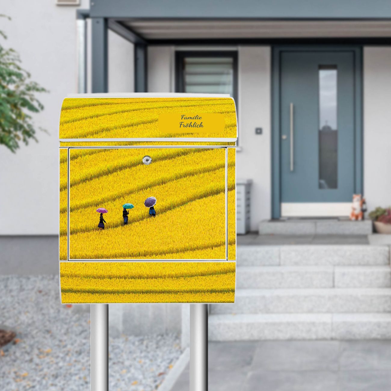Der Vorschau-Text Familie Fröhlich wird durch Ihren persönlichen Wunschtext ersetzt. Die Schriftart und Farbe bleiben gleich wie in der Vorschau.