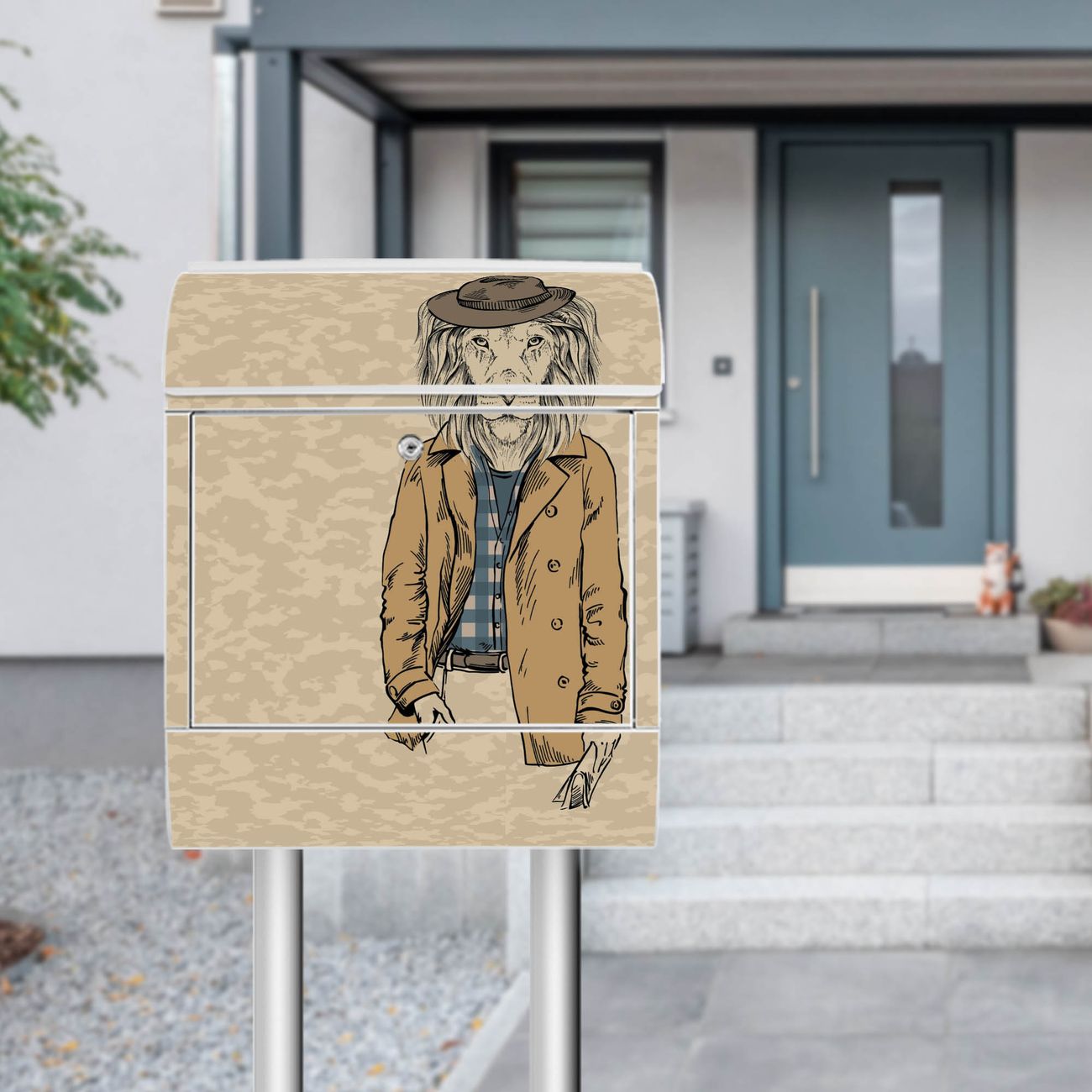 Der Standbriefkasten besteht aus pulverbeschichtetem Stahl und ist insgesamt ca. 161,5 x 47 x 16 cm groß. Das Motiv wird auf eine wetter- und UV-beständige Folie aufgebracht und mit einem robusten Schutzlaminat versiegelt. Damit bleibt die Farbbrillanz auch bei Sonne und Regen lange erhalten. Für einen sicheren Halt empfehlen wir, den Standbriefkasten mindestens 15 cm einzubetonieren. Jeder Briefkasten wird in Sachsen in einer kleinen Manufaktur von Hand veredelt - Sie erhalten ein Stück langlebige Handarbeit, das Funktionalität und Design vereint.