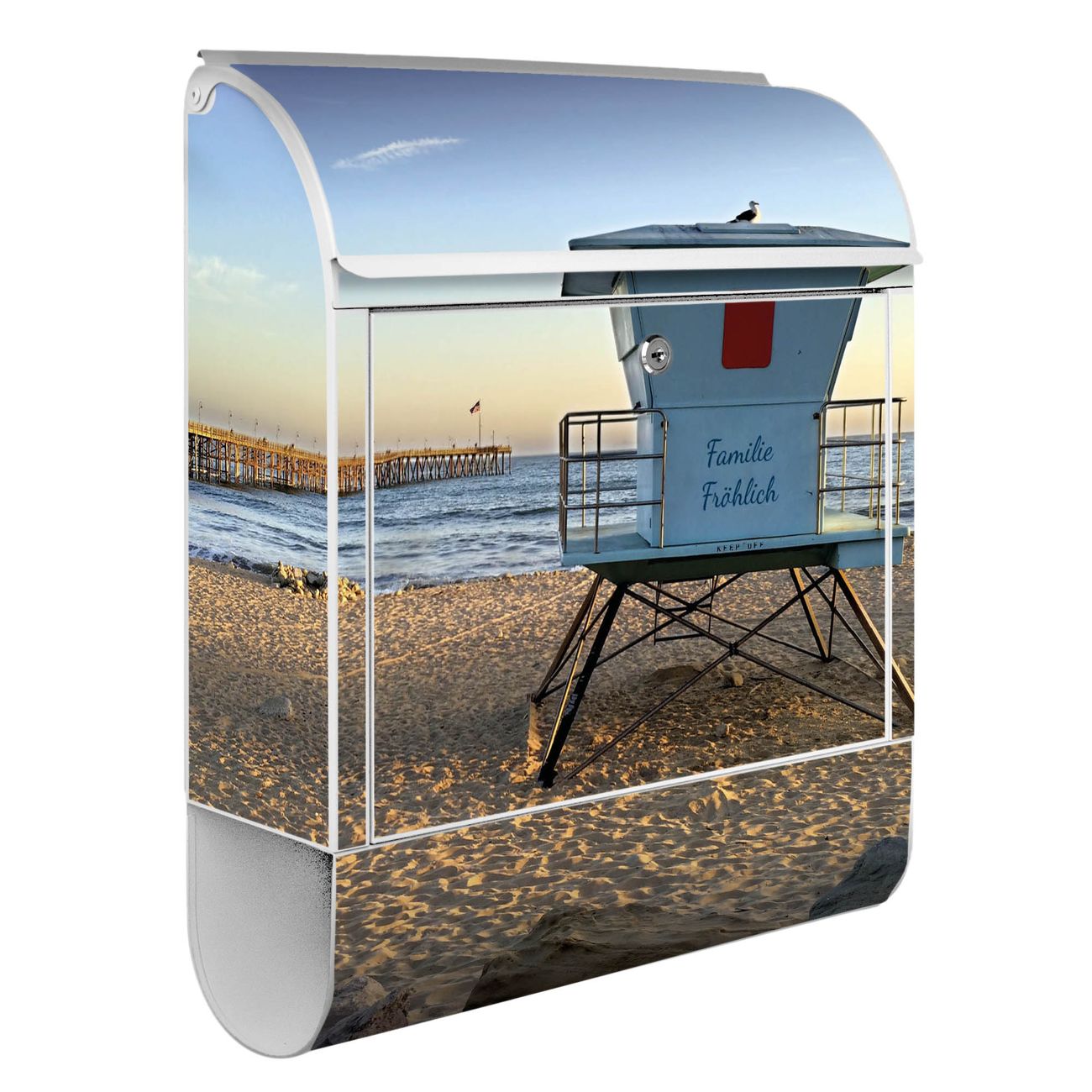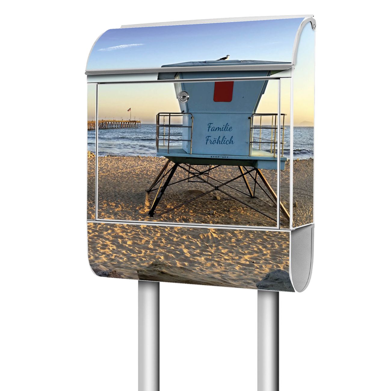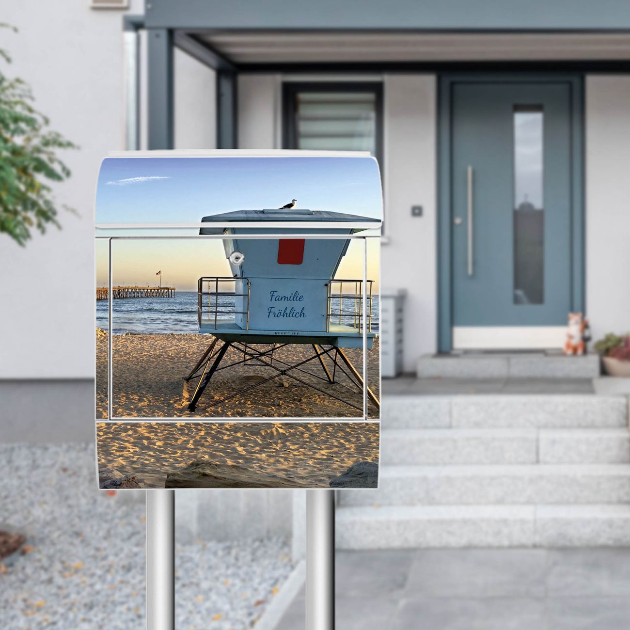 Der banjado Standbriefkasten mit Motiv Motiv Rettungsturm kombiniert großzügigen Stauraum mit modernem Design. Durch das geräumige Fach finden auch große A4-Sendungen problemlos Platz. Die integrierte Zeitungsrolle sorgt dafür, dass Tageszeitungen und Magazine separat und griffbereit untergebracht sind. Der pulverbeschichtete Standfuß ist farblich passend zum Briefkasten gestaltet und sorgt für ein stimmiges Gesamtbild. Mit dem individuellen Motiv setzen Sie einen optischen Akzent, der sowohl praktisch als auch dekorativ ist.