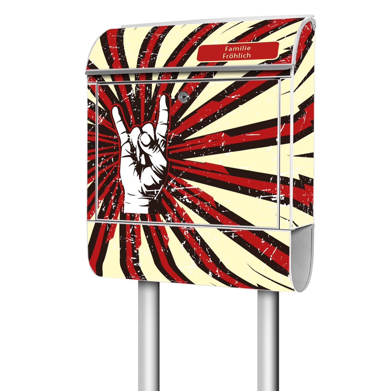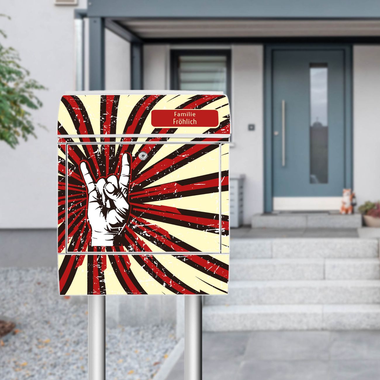 Der banjado Standbriefkasten mit Motiv Motiv Rock On kombiniert großzügigen Stauraum mit modernem Design. Durch das geräumige Fach finden auch große A4-Sendungen problemlos Platz. Die integrierte Zeitungsrolle sorgt dafür, dass Tageszeitungen und Magazine separat und griffbereit untergebracht sind. Der pulverbeschichtete Standfuß ist farblich passend zum Briefkasten gestaltet und sorgt für ein stimmiges Gesamtbild. Mit dem individuellen Motiv setzen Sie einen optischen Akzent, der sowohl praktisch als auch dekorativ ist.