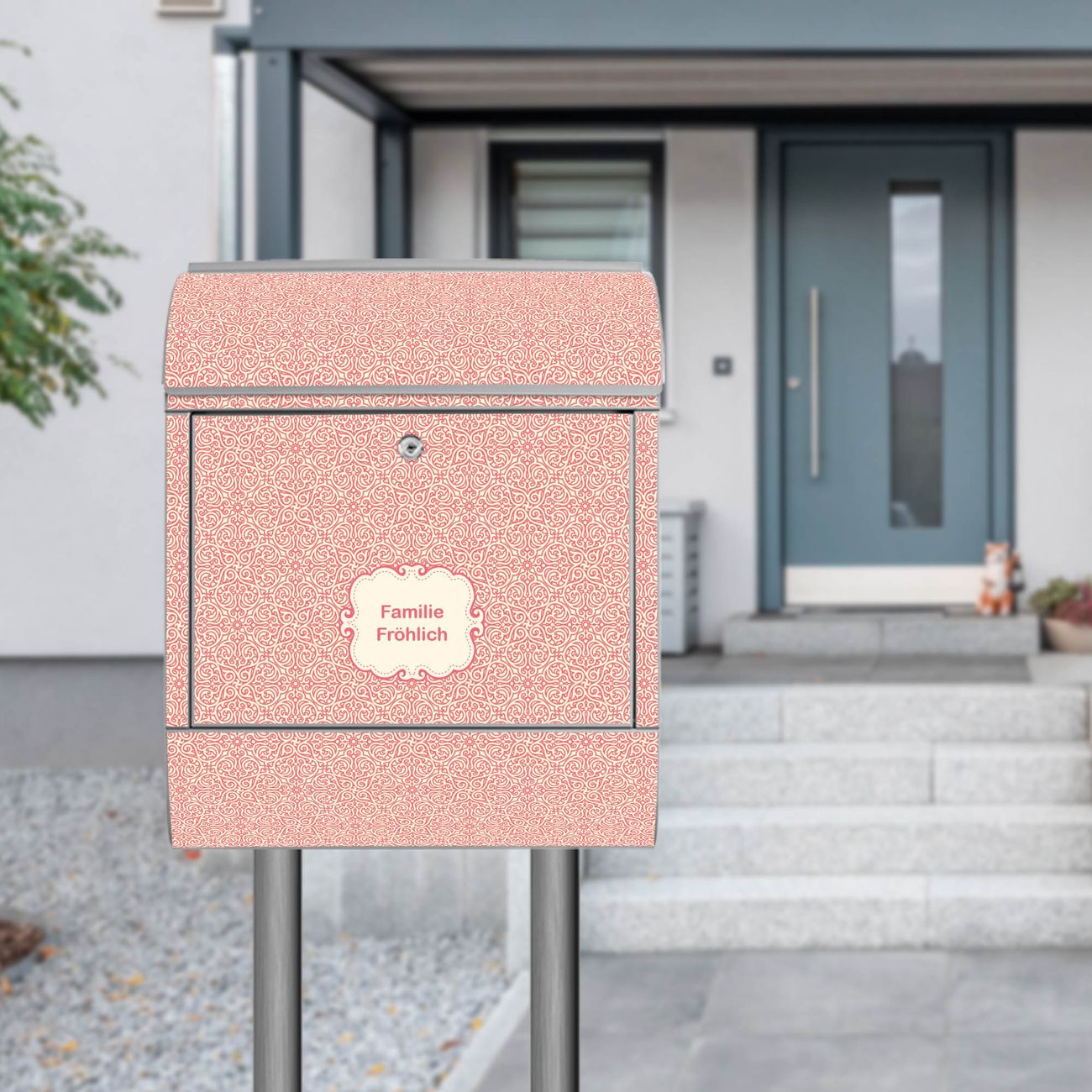 Der banjado Standbriefkasten mit Motiv Motiv Rosa Arabesque kombiniert großzügigen Stauraum mit modernem Design. Durch das geräumige Fach finden auch große A4-Sendungen problemlos Platz. Die integrierte Zeitungsrolle sorgt dafür, dass Tageszeitungen und Magazine separat und griffbereit untergebracht sind. Der pulverbeschichtete Standfuß ist farblich passend zum Briefkasten gestaltet und sorgt für ein stimmiges Gesamtbild. Mit dem individuellen Motiv setzen Sie einen optischen Akzent, der sowohl praktisch als auch dekorativ ist.