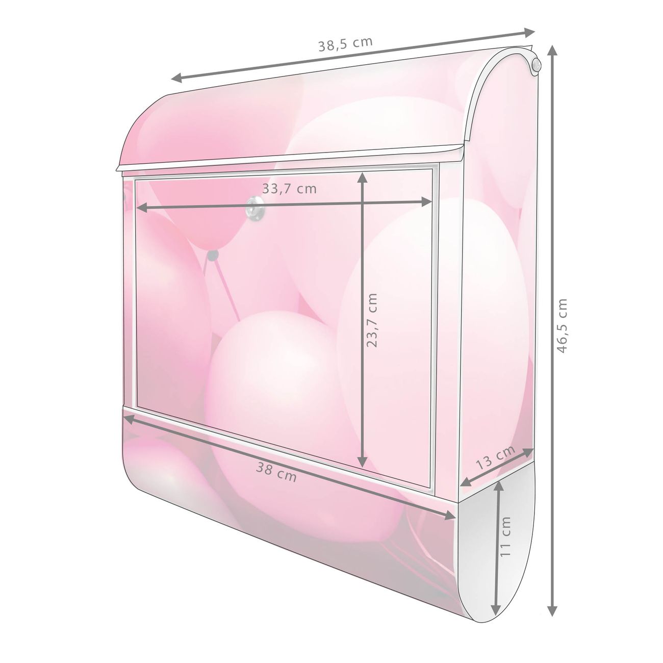 Der banjado Standbriefkasten mit Motiv Motiv Rosa Ballons 2 kombiniert großzügigen Stauraum mit modernem Design. Durch das geräumige Fach finden auch große A4-Sendungen problemlos Platz. Die integrierte Zeitungsrolle sorgt dafür, dass Tageszeitungen und Magazine separat und griffbereit untergebracht sind. Der pulverbeschichtete Standfuß ist farblich passend zum Briefkasten gestaltet und sorgt für ein stimmiges Gesamtbild. Mit dem individuellen Motiv setzen Sie einen optischen Akzent, der sowohl praktisch als auch dekorativ ist.