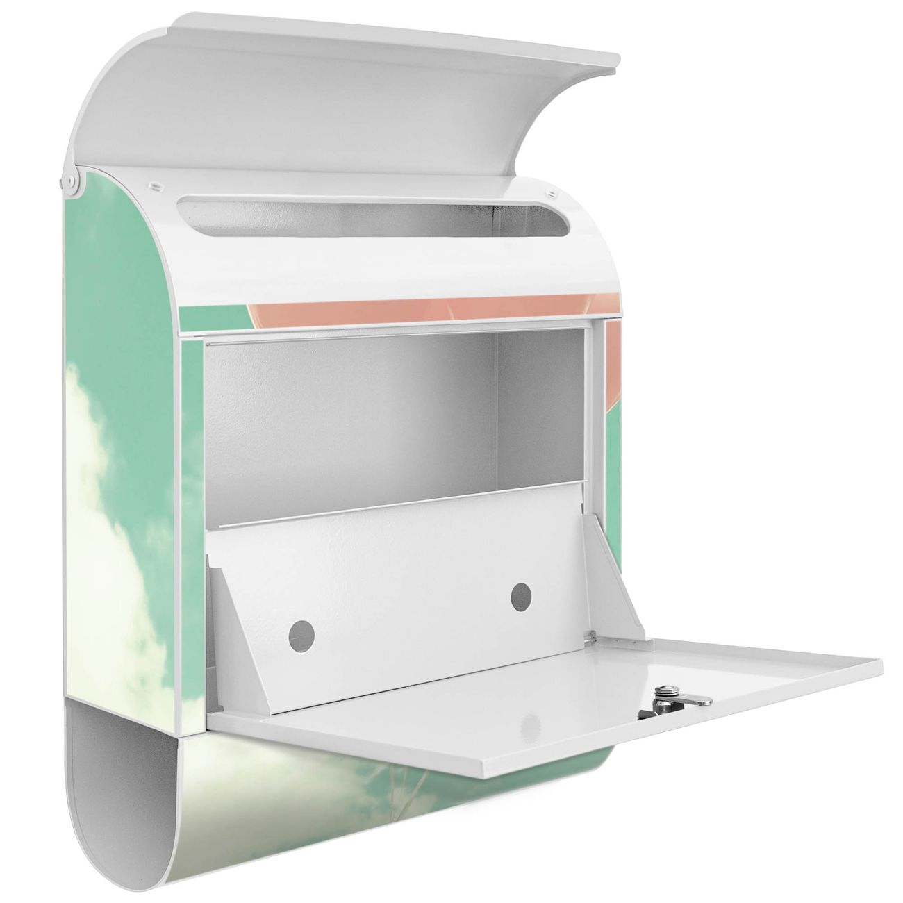 Der banjado Standbriefkasten mit Motiv Motiv Rosa Ballons kombiniert großzügigen Stauraum mit modernem Design. Durch das geräumige Fach finden auch große A4-Sendungen problemlos Platz. Die integrierte Zeitungsrolle sorgt dafür, dass Tageszeitungen und Magazine separat und griffbereit untergebracht sind. Der pulverbeschichtete Standfuß ist farblich passend zum Briefkasten gestaltet und sorgt für ein stimmiges Gesamtbild. Mit dem individuellen Motiv setzen Sie einen optischen Akzent, der sowohl praktisch als auch dekorativ ist.