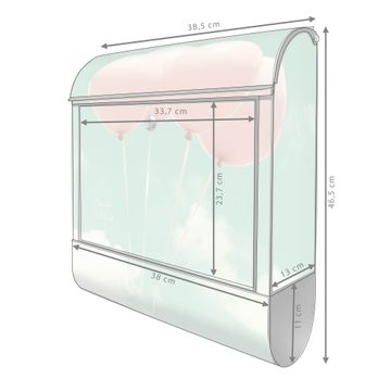 Der banjado Standbriefkasten mit Motiv Motiv Rosa Ballons kombiniert großzügigen Stauraum mit modernem Design. Durch das geräumige Fach finden auch große A4-Sendungen problemlos Platz. Die integrierte Zeitungsrolle sorgt dafür, dass Tageszeitungen und Magazine separat und griffbereit untergebracht sind. Der pulverbeschichtete Standfuß ist farblich passend zum Briefkasten gestaltet und sorgt für ein stimmiges Gesamtbild. Mit dem individuellen Motiv setzen Sie einen optischen Akzent, der sowohl praktisch als auch dekorativ ist.