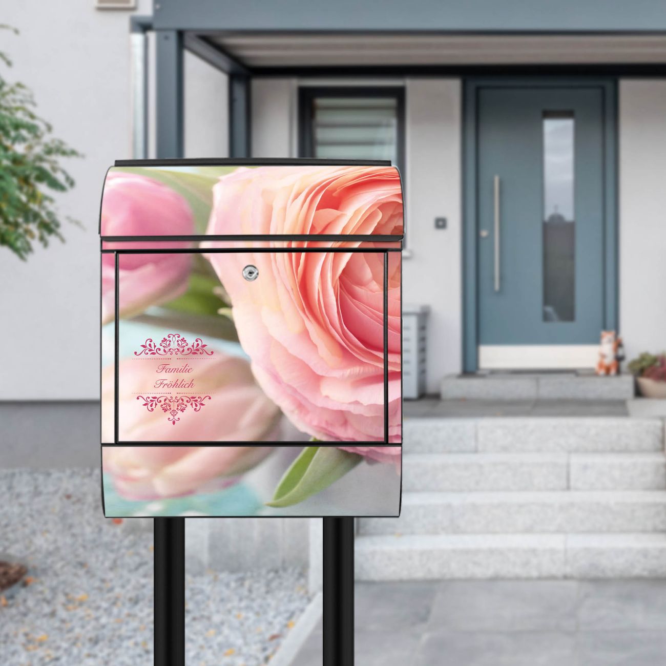 Der Vorschau-Text Familie Fröhlich wird durch Ihren persönlichen Wunschtext ersetzt. Die Schriftart und Farbe bleiben gleich wie in der Vorschau.