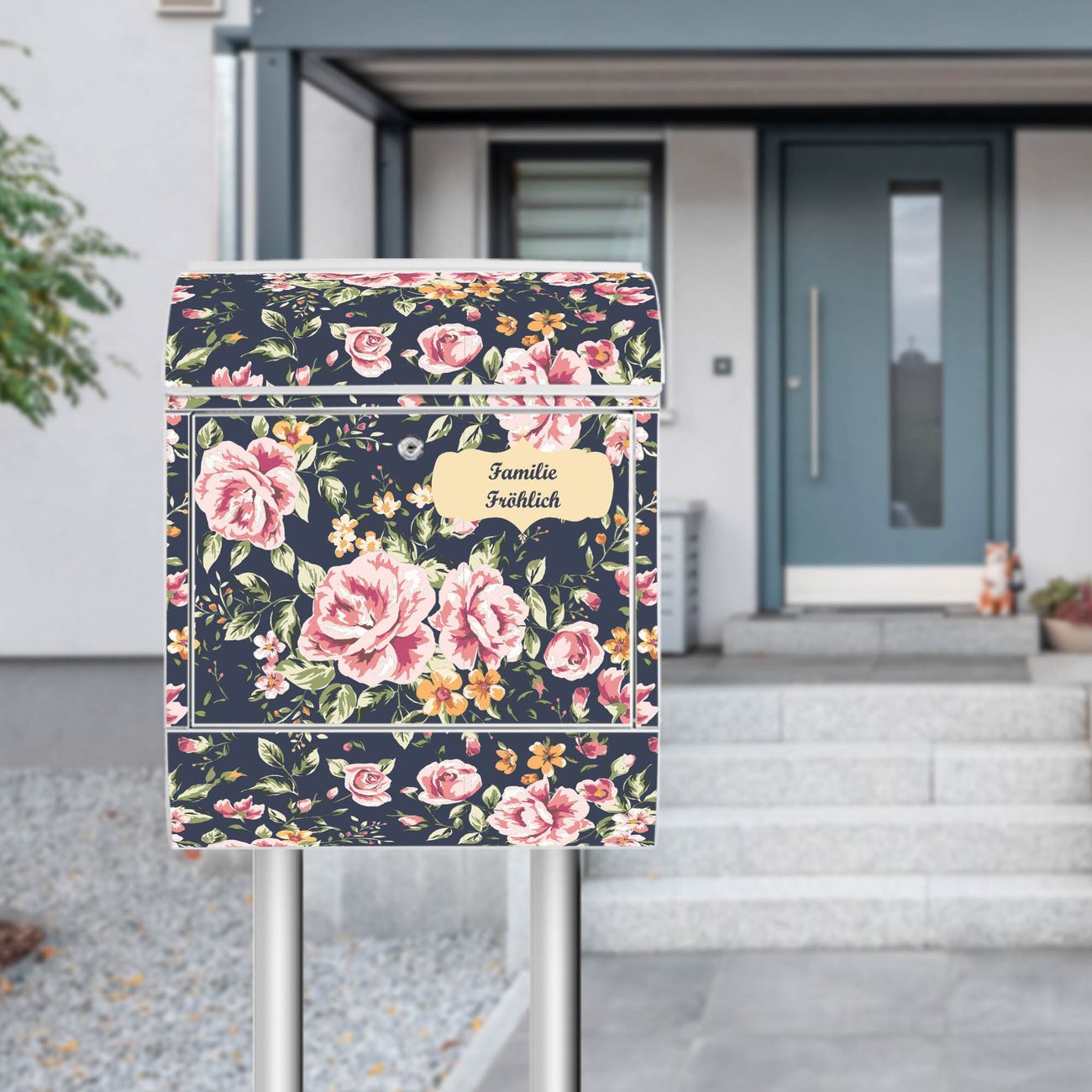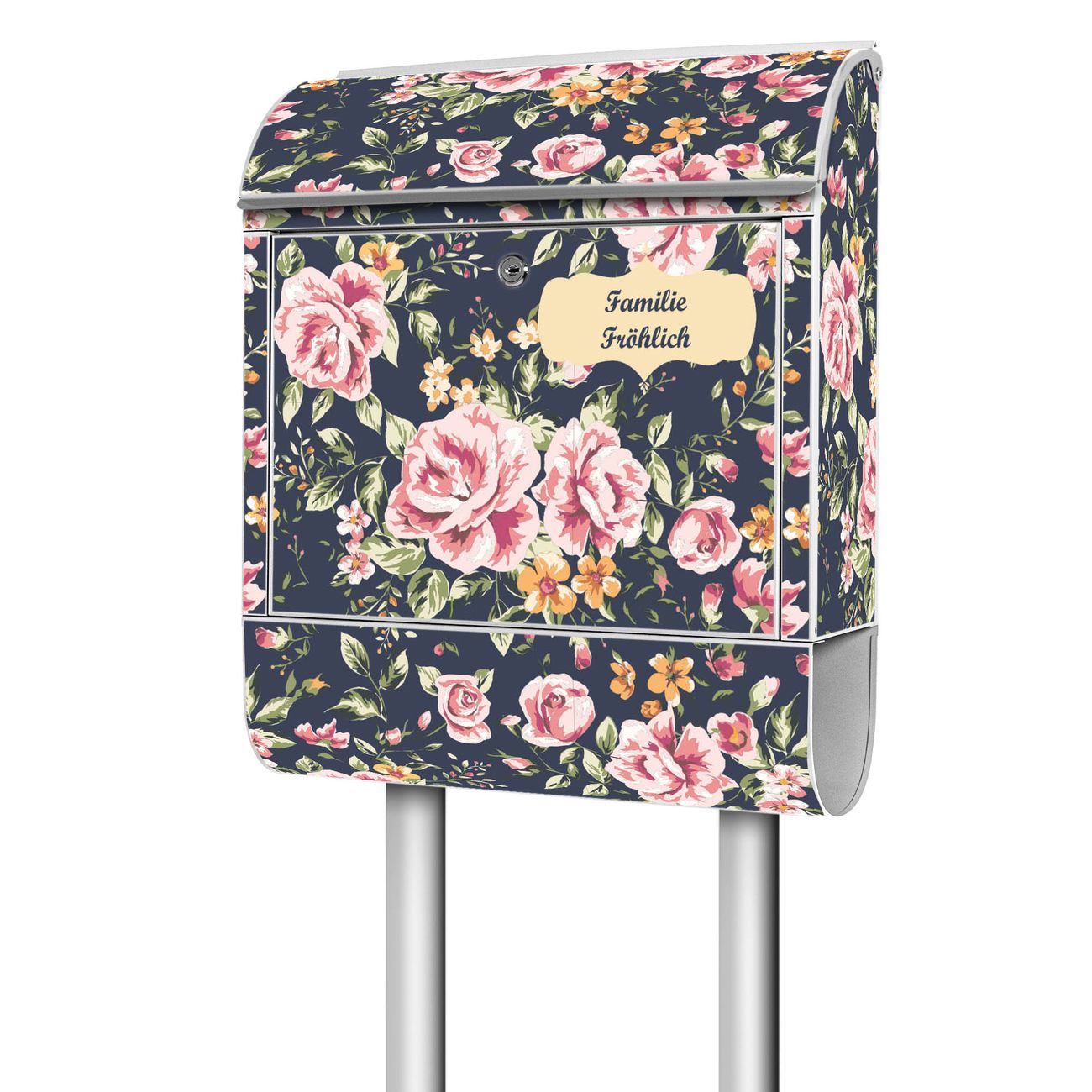 Standbriefkasten Stahl Rosen Auf Anthrazit