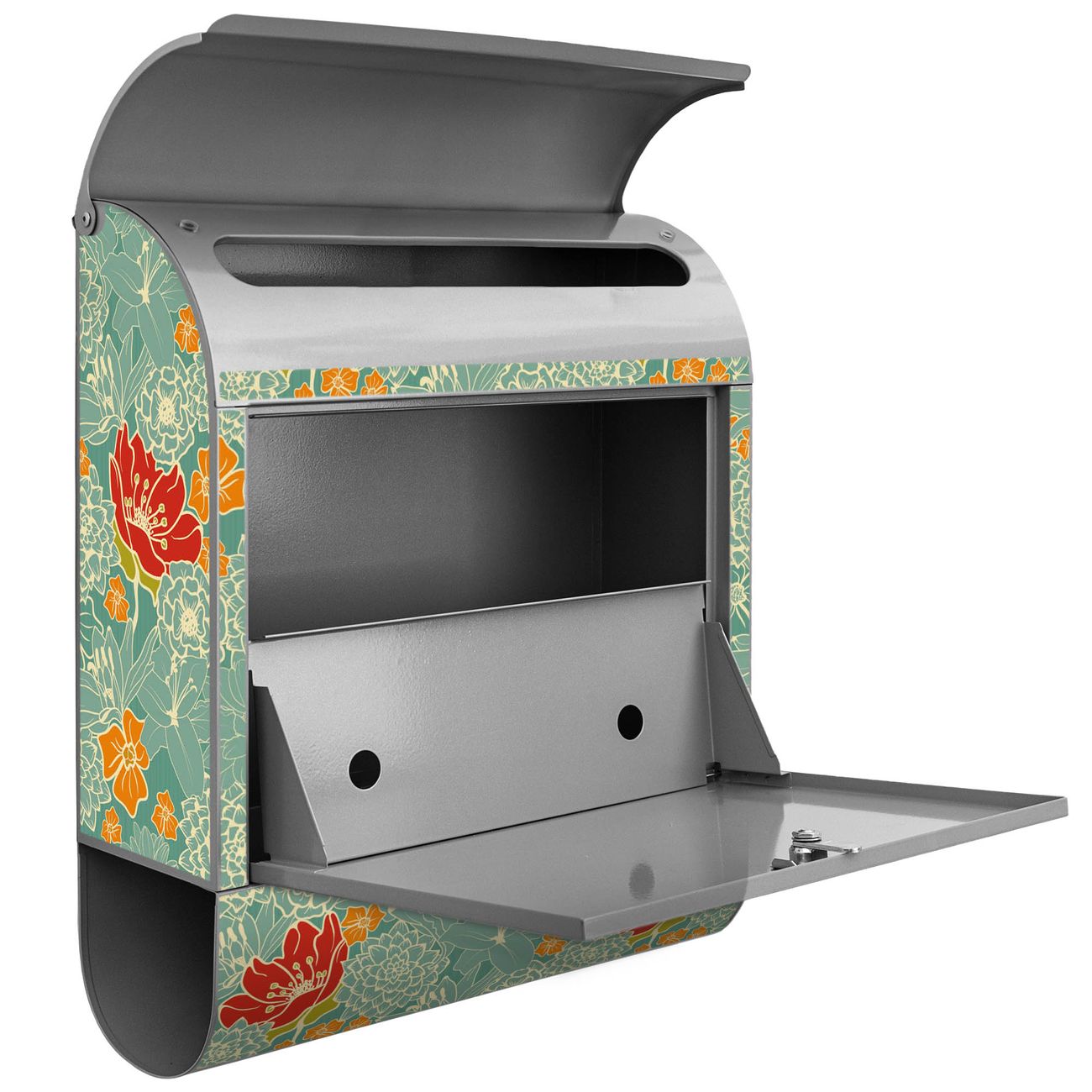 Der banjado Standbriefkasten mit Motiv Motiv Rote Blumen kombiniert großzügigen Stauraum mit modernem Design. Durch das geräumige Fach finden auch große A4-Sendungen problemlos Platz. Die integrierte Zeitungsrolle sorgt dafür, dass Tageszeitungen und Magazine separat und griffbereit untergebracht sind. Der pulverbeschichtete Standfuß ist farblich passend zum Briefkasten gestaltet und sorgt für ein stimmiges Gesamtbild. Mit dem individuellen Motiv setzen Sie einen optischen Akzent, der sowohl praktisch als auch dekorativ ist.