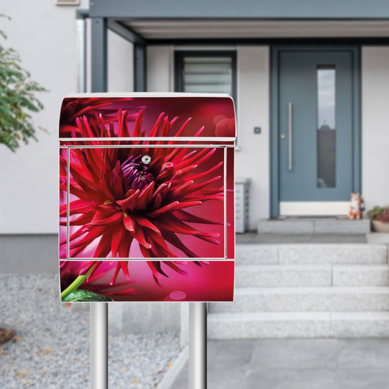 Standbriefkasten Stahl Rote Dahlien