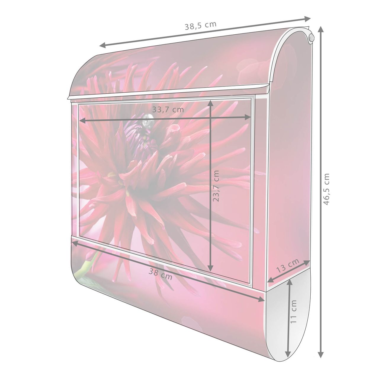 Der banjado Standbriefkasten mit Motiv Motiv Rote Dahlien kombiniert großzügigen Stauraum mit modernem Design. Durch das geräumige Fach finden auch große A4-Sendungen problemlos Platz. Die integrierte Zeitungsrolle sorgt dafür, dass Tageszeitungen und Magazine separat und griffbereit untergebracht sind. Der pulverbeschichtete Standfuß ist farblich passend zum Briefkasten gestaltet und sorgt für ein stimmiges Gesamtbild. Mit dem individuellen Motiv setzen Sie einen optischen Akzent, der sowohl praktisch als auch dekorativ ist.