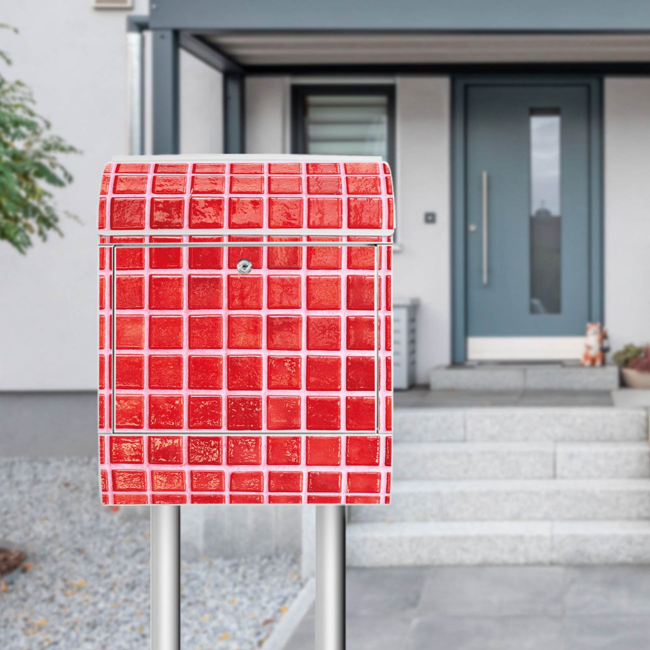 Der banjado Standbriefkasten mit Motiv Motiv Rote Kacheln kombiniert großzügigen Stauraum mit modernem Design. Durch das geräumige Fach finden auch große A4-Sendungen problemlos Platz. Die integrierte Zeitungsrolle sorgt dafür, dass Tageszeitungen und Magazine separat und griffbereit untergebracht sind. Der pulverbeschichtete Standfuß ist farblich passend zum Briefkasten gestaltet und sorgt für ein stimmiges Gesamtbild. Mit dem individuellen Motiv setzen Sie einen optischen Akzent, der sowohl praktisch als auch dekorativ ist.