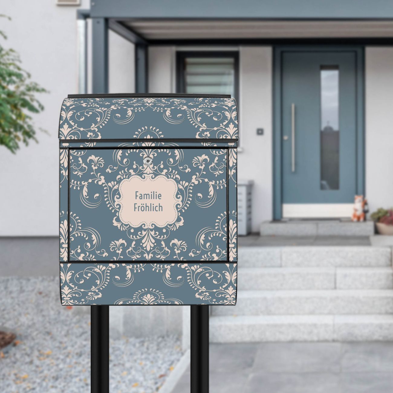 Der Vorschau-Text Familie Fröhlich wird durch Ihren persönlichen Wunschtext ersetzt. Die Schriftart und Farbe bleiben gleich wie in der Vorschau.