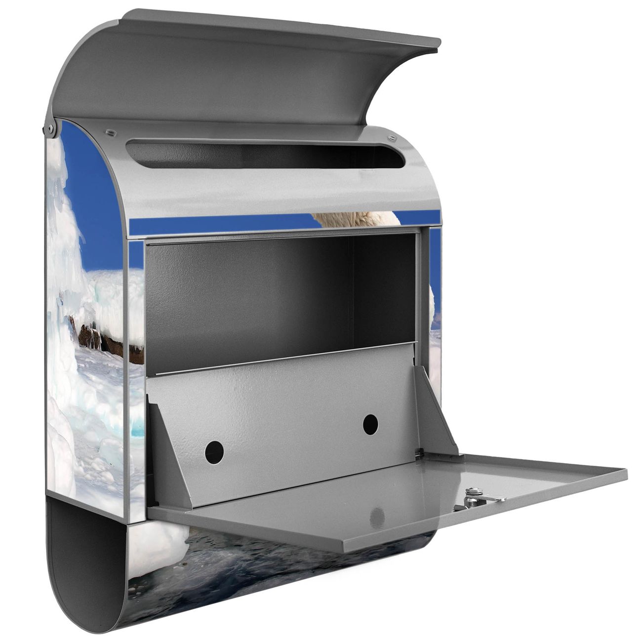Der banjado Standbriefkasten mit Motiv Motiv Ruhender Eisbär kombiniert großzügigen Stauraum mit modernem Design. Durch das geräumige Fach finden auch große A4-Sendungen problemlos Platz. Die integrierte Zeitungsrolle sorgt dafür, dass Tageszeitungen und Magazine separat und griffbereit untergebracht sind. Der pulverbeschichtete Standfuß ist farblich passend zum Briefkasten gestaltet und sorgt für ein stimmiges Gesamtbild. Mit dem individuellen Motiv setzen Sie einen optischen Akzent, der sowohl praktisch als auch dekorativ ist.