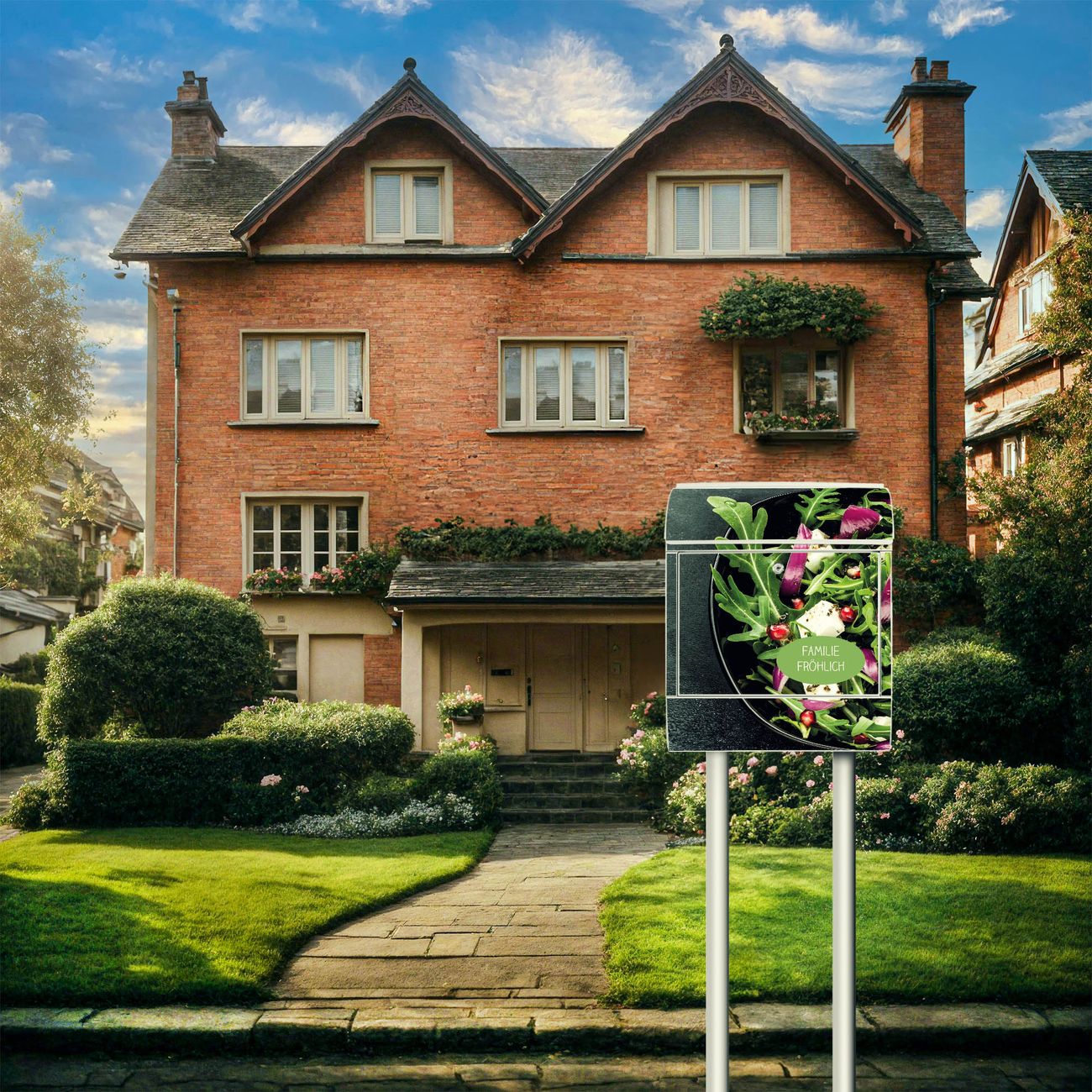 Der Vorschau-Text Familie Fröhlich wird durch Ihren persönlichen Wunschtext ersetzt. Die Schriftart und Farbe bleiben gleich wie in der Vorschau.