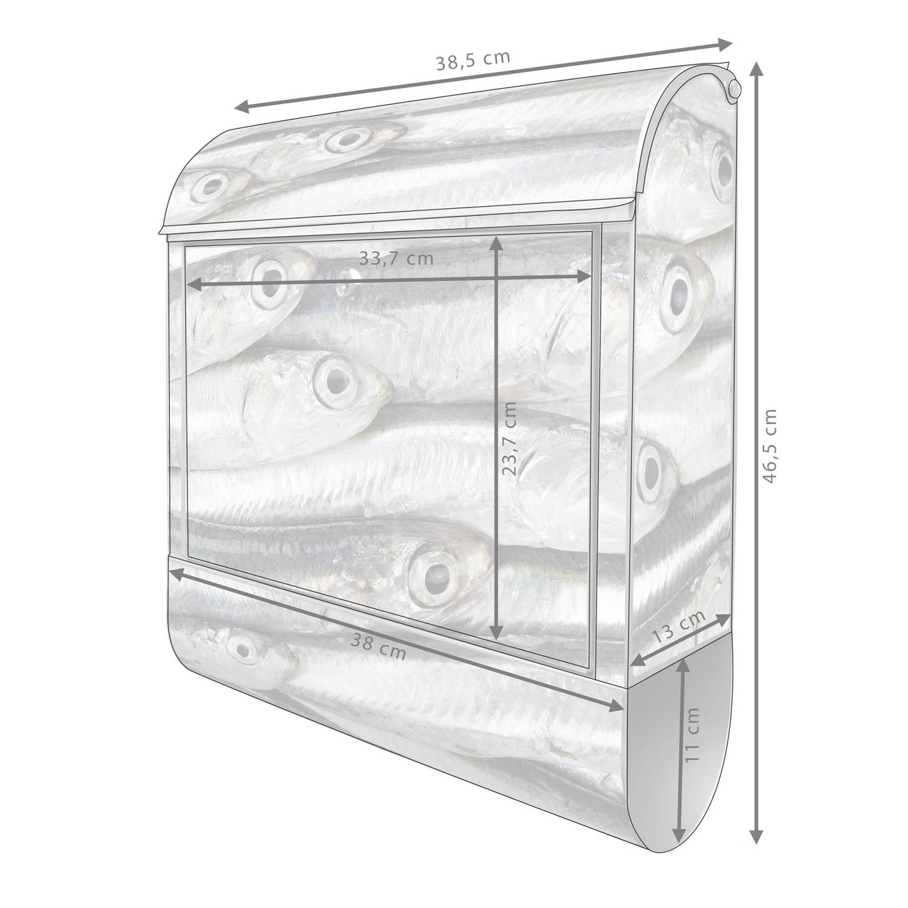 Der banjado Standbriefkasten mit Motiv Motiv Sardinen kombiniert großzügigen Stauraum mit modernem Design. Durch das geräumige Fach finden auch große A4-Sendungen problemlos Platz. Die integrierte Zeitungsrolle sorgt dafür, dass Tageszeitungen und Magazine separat und griffbereit untergebracht sind. Der pulverbeschichtete Standfuß ist farblich passend zum Briefkasten gestaltet und sorgt für ein stimmiges Gesamtbild. Mit dem individuellen Motiv setzen Sie einen optischen Akzent, der sowohl praktisch als auch dekorativ ist.