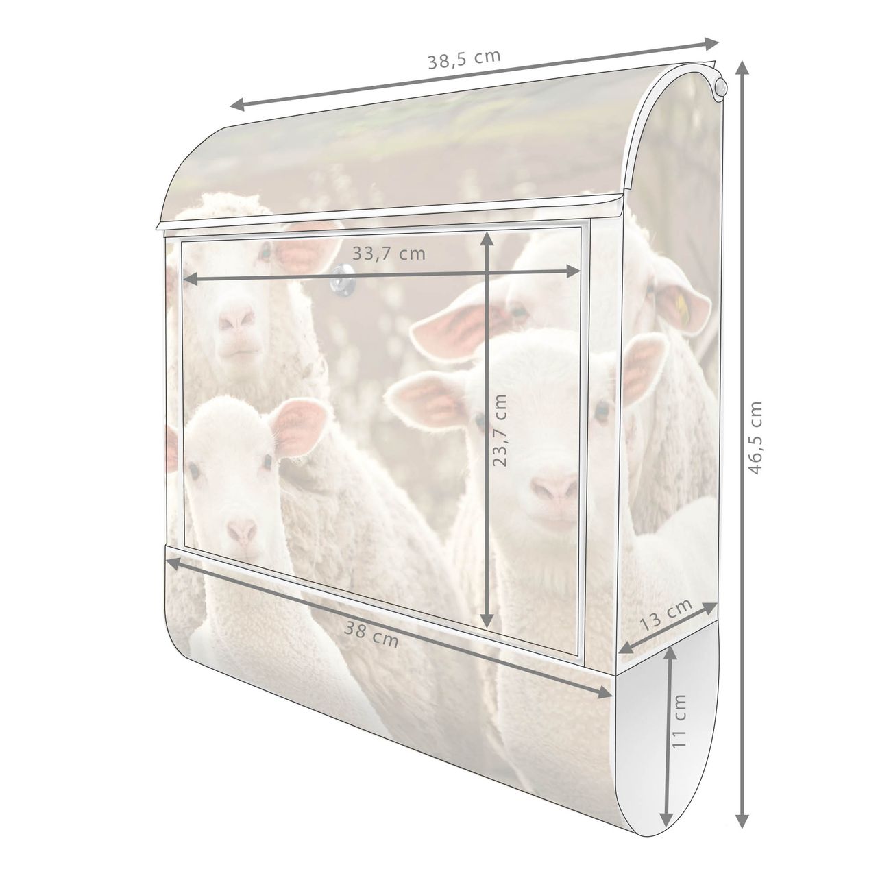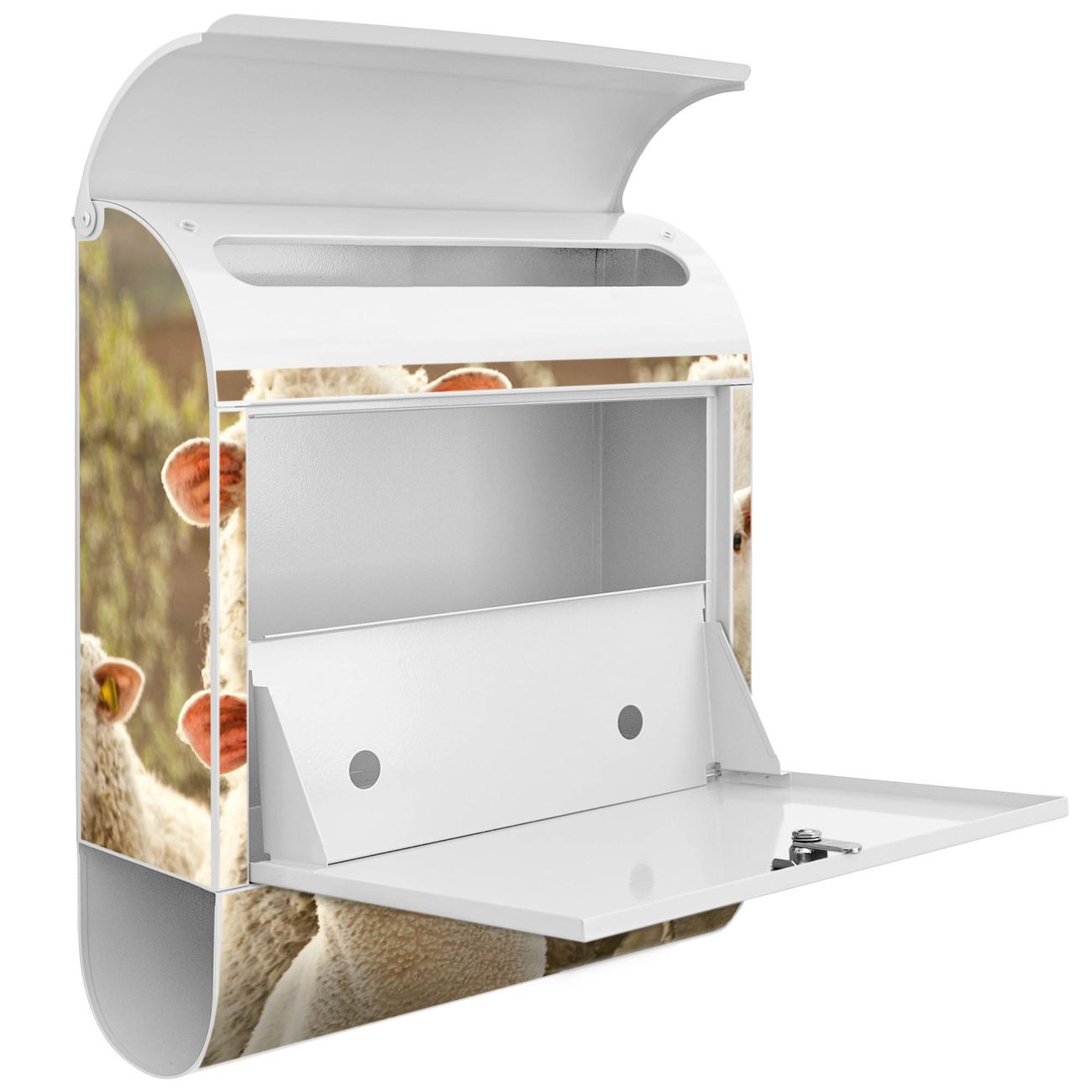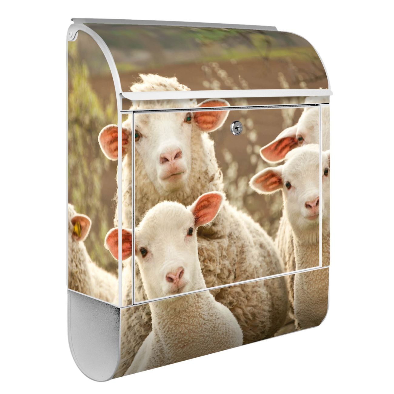 Der banjado Standbriefkasten mit Motiv Motiv Schaffamilie kombiniert großzügigen Stauraum mit modernem Design. Durch das geräumige Fach finden auch große A4-Sendungen problemlos Platz. Die integrierte Zeitungsrolle sorgt dafür, dass Tageszeitungen und Magazine separat und griffbereit untergebracht sind. Der pulverbeschichtete Standfuß ist farblich passend zum Briefkasten gestaltet und sorgt für ein stimmiges Gesamtbild. Mit dem individuellen Motiv setzen Sie einen optischen Akzent, der sowohl praktisch als auch dekorativ ist.