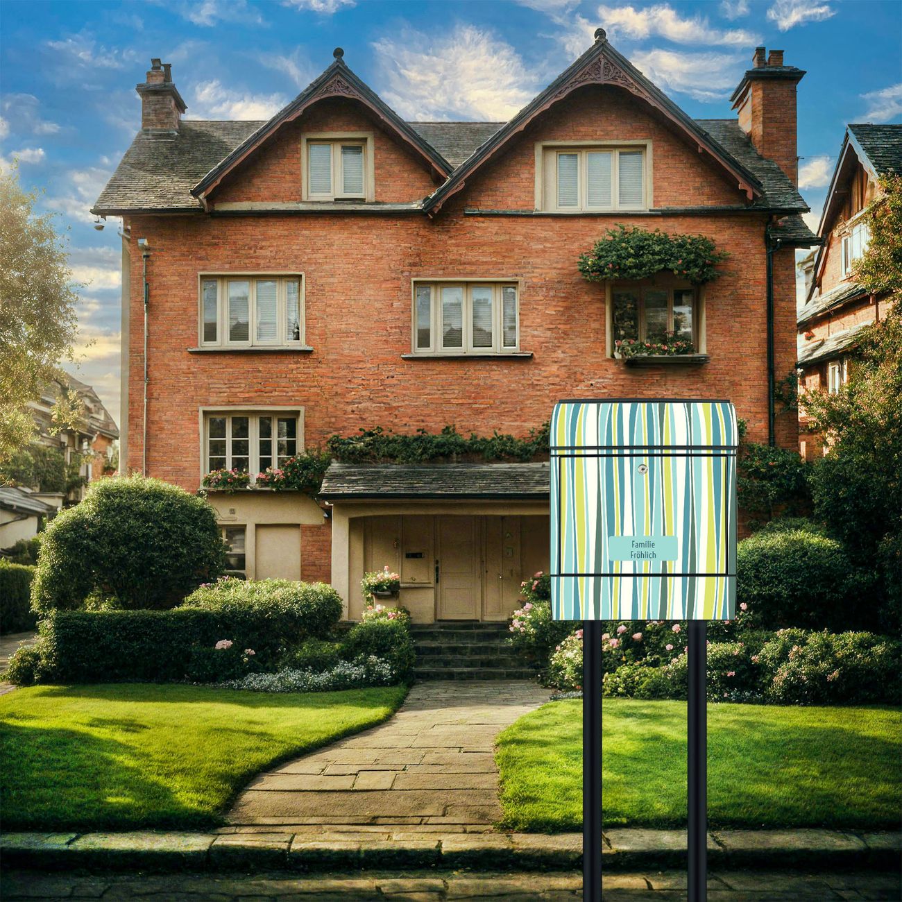 Der Standbriefkasten besteht aus pulverbeschichtetem Stahl und ist insgesamt ca. 161,5 x 47 x 16 cm groß. Das Motiv wird auf eine wetter- und UV-beständige Folie aufgebracht und mit einem robusten Schutzlaminat versiegelt. Damit bleibt die Farbbrillanz auch bei Sonne und Regen lange erhalten. Für einen sicheren Halt empfehlen wir, den Standbriefkasten mindestens 15 cm einzubetonieren. Jeder Briefkasten wird in Sachsen in einer kleinen Manufaktur von Hand veredelt - Sie erhalten ein Stück langlebige Handarbeit, das Funktionalität und Design vereint.