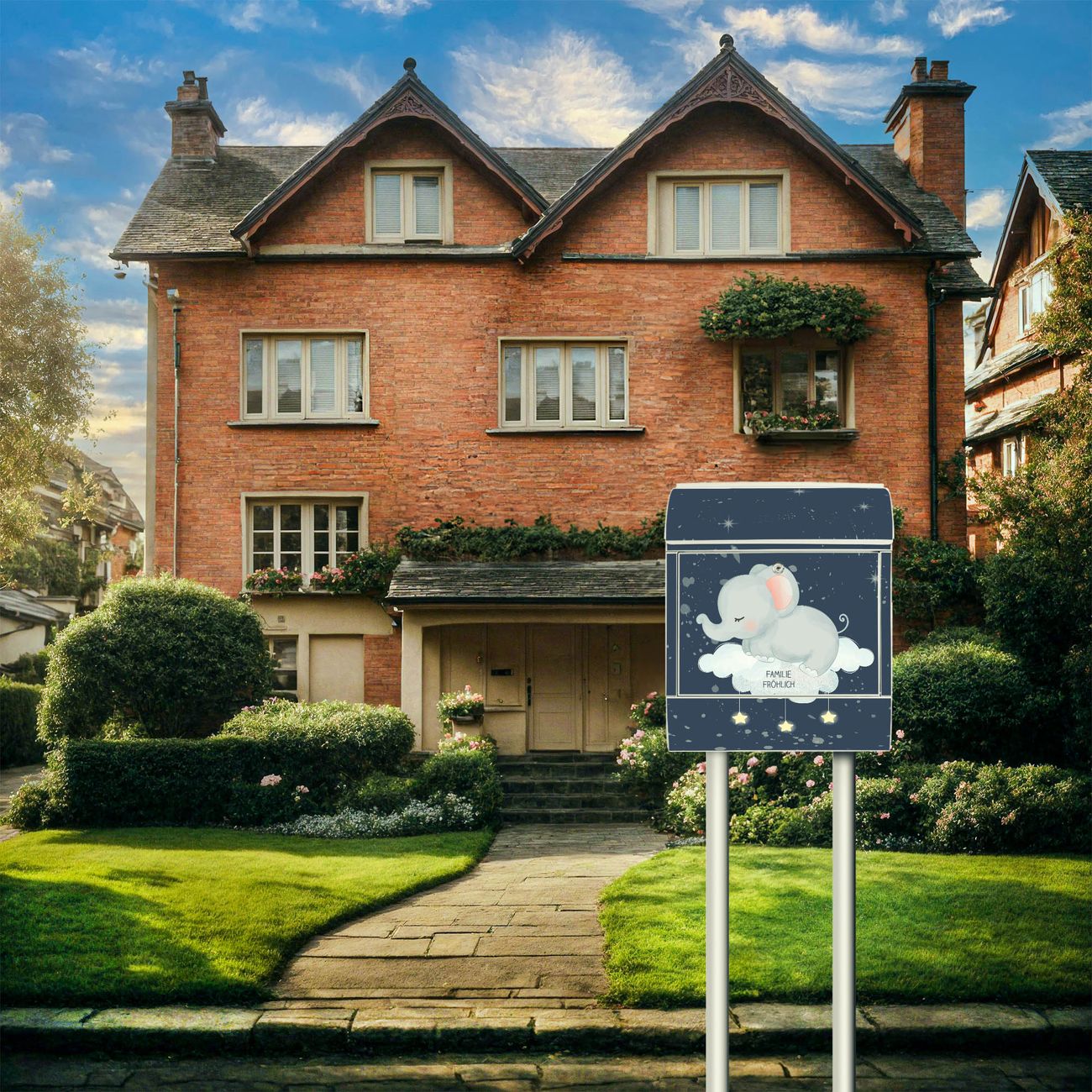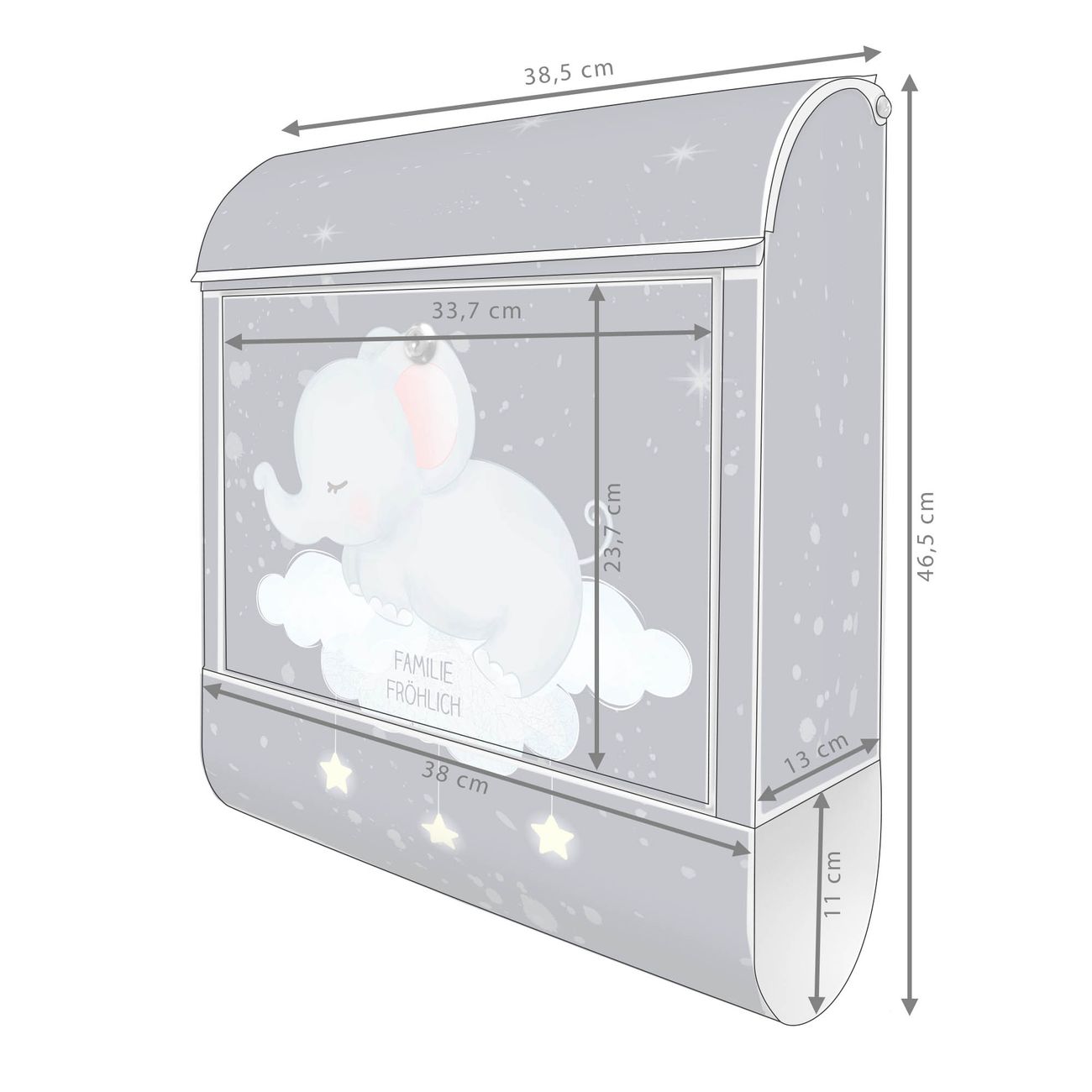 Der banjado Standbriefkasten mit Motiv Motiv schlafender Elefant kombiniert großzügigen Stauraum mit modernem Design. Durch das geräumige Fach finden auch große A4-Sendungen problemlos Platz. Die integrierte Zeitungsrolle sorgt dafür, dass Tageszeitungen und Magazine separat und griffbereit untergebracht sind. Der pulverbeschichtete Standfuß ist farblich passend zum Briefkasten gestaltet und sorgt für ein stimmiges Gesamtbild. Mit dem individuellen Motiv setzen Sie einen optischen Akzent, der sowohl praktisch als auch dekorativ ist.