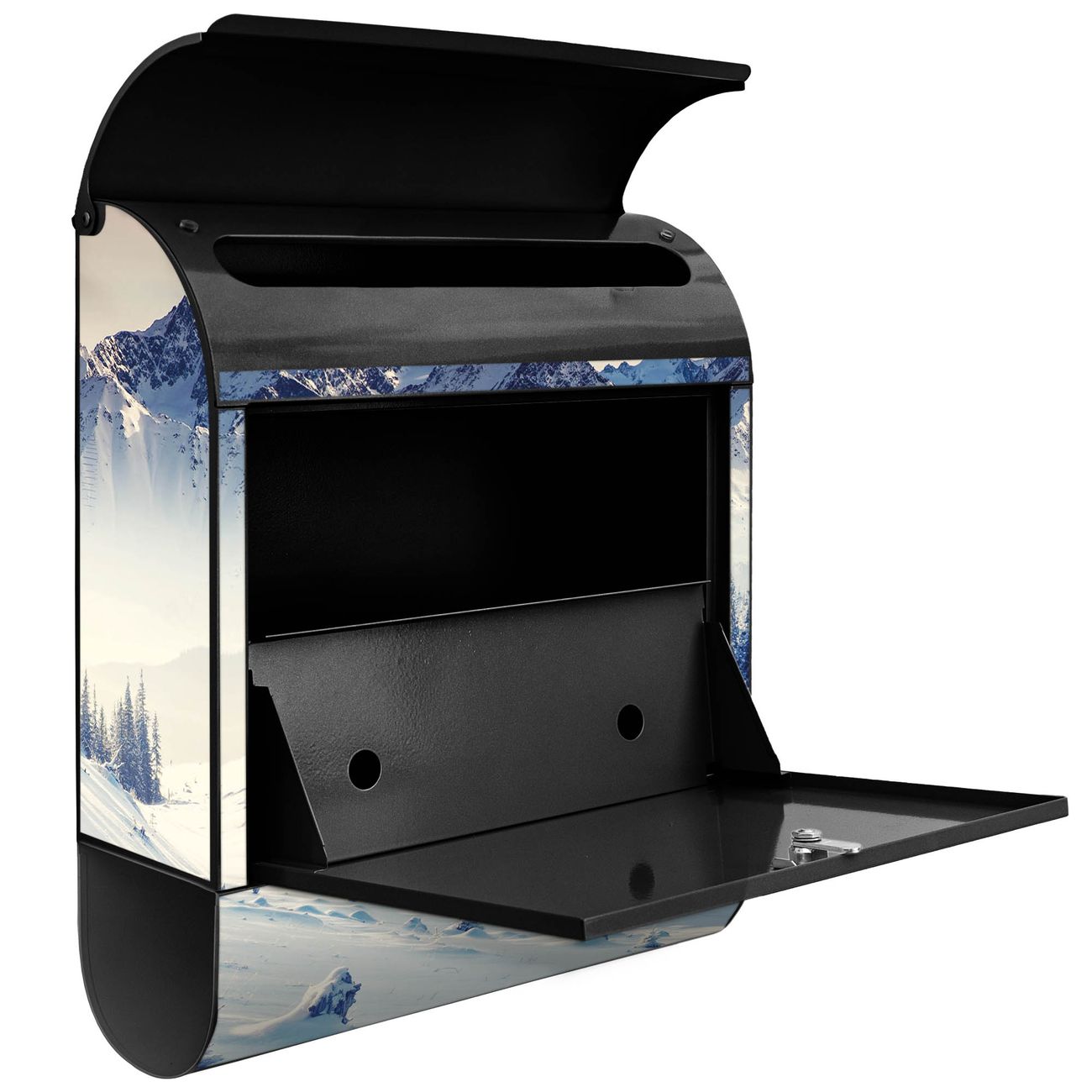 Der banjado Standbriefkasten mit Motiv Motiv Schneebedeckte Berge kombiniert großzügigen Stauraum mit modernem Design. Durch das geräumige Fach finden auch große A4-Sendungen problemlos Platz. Die integrierte Zeitungsrolle sorgt dafür, dass Tageszeitungen und Magazine separat und griffbereit untergebracht sind. Der pulverbeschichtete Standfuß ist farblich passend zum Briefkasten gestaltet und sorgt für ein stimmiges Gesamtbild. Mit dem individuellen Motiv setzen Sie einen optischen Akzent, der sowohl praktisch als auch dekorativ ist.