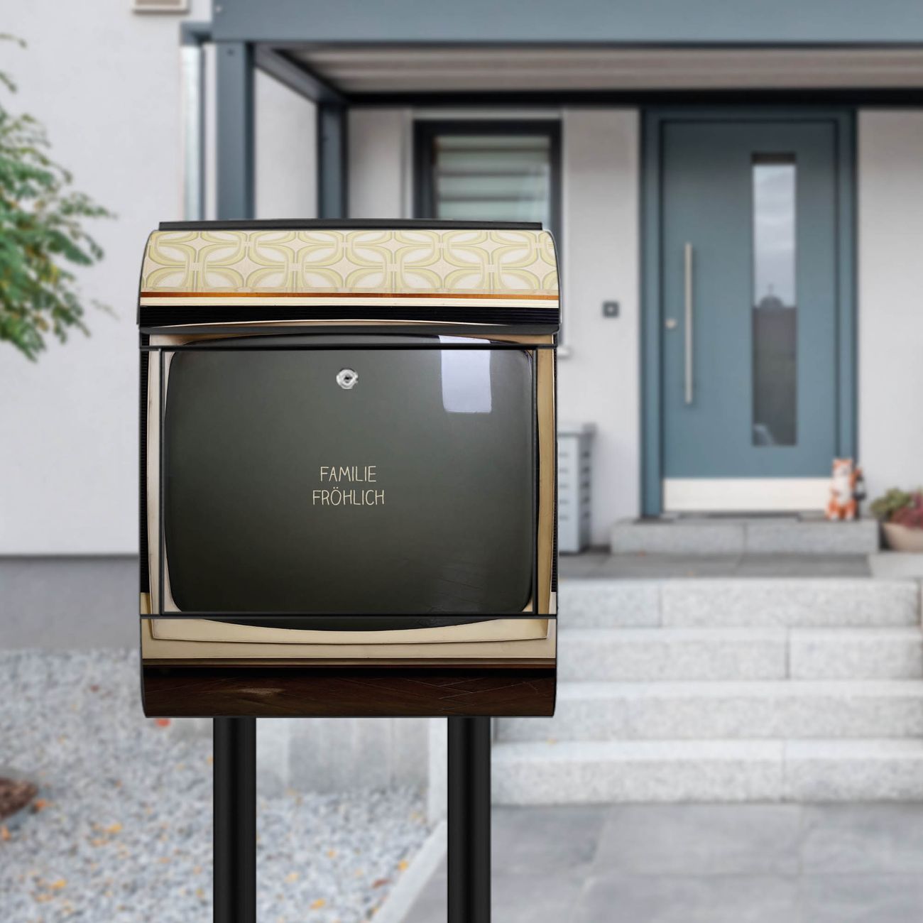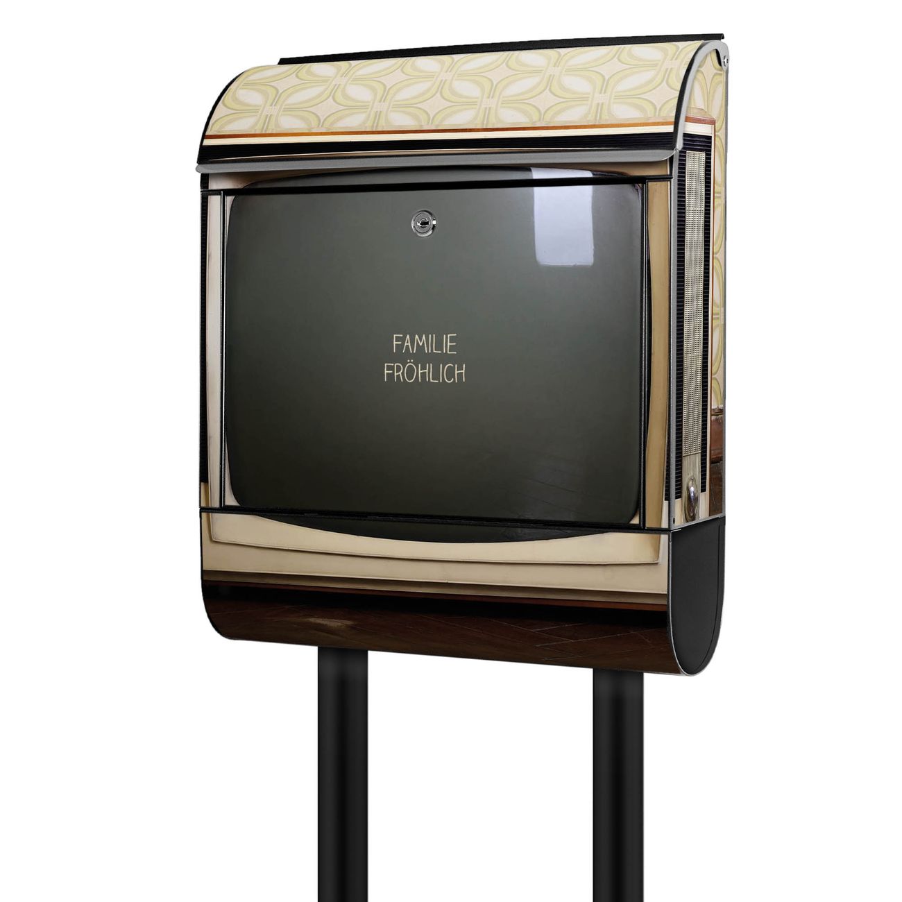 Der banjado Standbriefkasten mit Motiv Motiv Schwarzweiß TV kombiniert großzügigen Stauraum mit modernem Design. Durch das geräumige Fach finden auch große A4-Sendungen problemlos Platz. Die integrierte Zeitungsrolle sorgt dafür, dass Tageszeitungen und Magazine separat und griffbereit untergebracht sind. Der pulverbeschichtete Standfuß ist farblich passend zum Briefkasten gestaltet und sorgt für ein stimmiges Gesamtbild. Mit dem individuellen Motiv setzen Sie einen optischen Akzent, der sowohl praktisch als auch dekorativ ist.