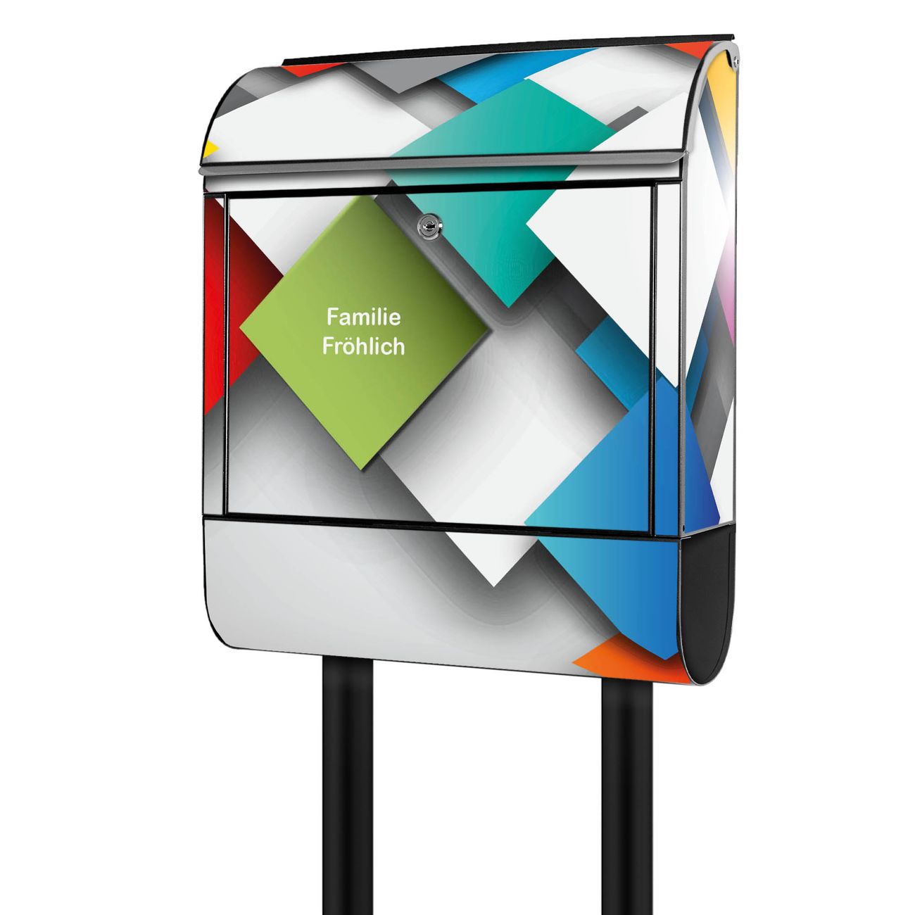 Der banjado Standbriefkasten mit Motiv Motiv Schwebende Quadrate kombiniert großzügigen Stauraum mit modernem Design. Durch das geräumige Fach finden auch große A4-Sendungen problemlos Platz. Die integrierte Zeitungsrolle sorgt dafür, dass Tageszeitungen und Magazine separat und griffbereit untergebracht sind. Der pulverbeschichtete Standfuß ist farblich passend zum Briefkasten gestaltet und sorgt für ein stimmiges Gesamtbild. Mit dem individuellen Motiv setzen Sie einen optischen Akzent, der sowohl praktisch als auch dekorativ ist.