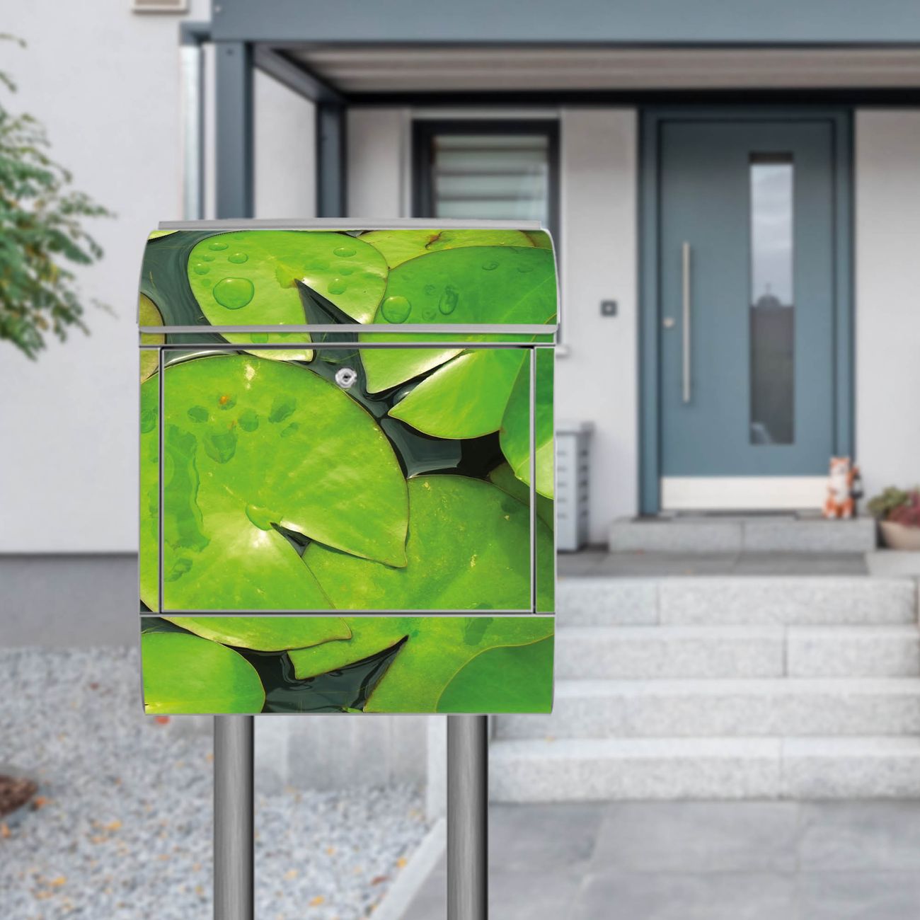 Der banjado Standbriefkasten mit Motiv Motiv Seerosenblätter kombiniert großzügigen Stauraum mit modernem Design. Durch das geräumige Fach finden auch große A4-Sendungen problemlos Platz. Die integrierte Zeitungsrolle sorgt dafür, dass Tageszeitungen und Magazine separat und griffbereit untergebracht sind. Der pulverbeschichtete Standfuß ist farblich passend zum Briefkasten gestaltet und sorgt für ein stimmiges Gesamtbild. Mit dem individuellen Motiv setzen Sie einen optischen Akzent, der sowohl praktisch als auch dekorativ ist.