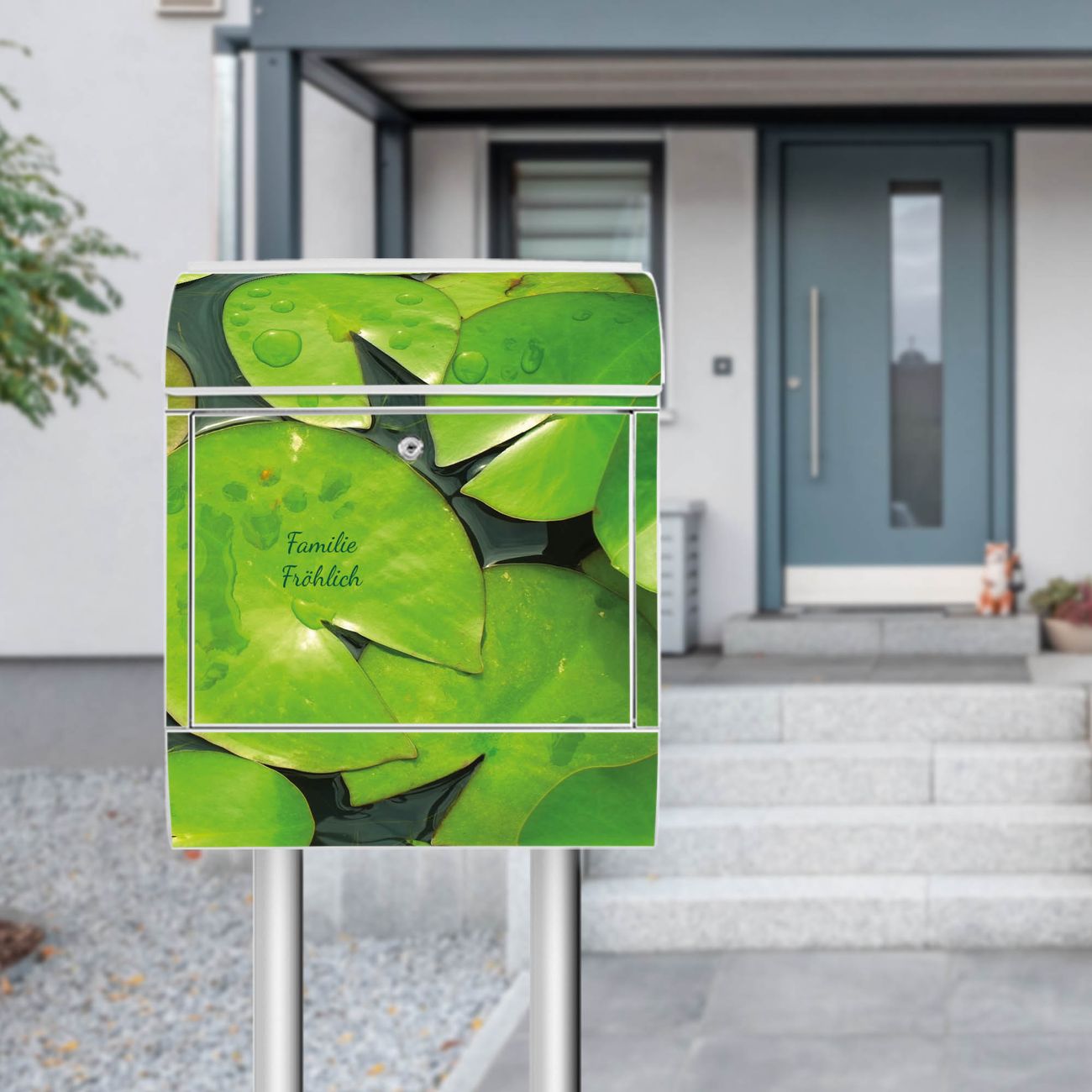 Der banjado Standbriefkasten mit Motiv Motiv Seerosenblätter kombiniert großzügigen Stauraum mit modernem Design. Durch das geräumige Fach finden auch große A4-Sendungen problemlos Platz. Die integrierte Zeitungsrolle sorgt dafür, dass Tageszeitungen und Magazine separat und griffbereit untergebracht sind. Der pulverbeschichtete Standfuß ist farblich passend zum Briefkasten gestaltet und sorgt für ein stimmiges Gesamtbild. Mit dem individuellen Motiv setzen Sie einen optischen Akzent, der sowohl praktisch als auch dekorativ ist.