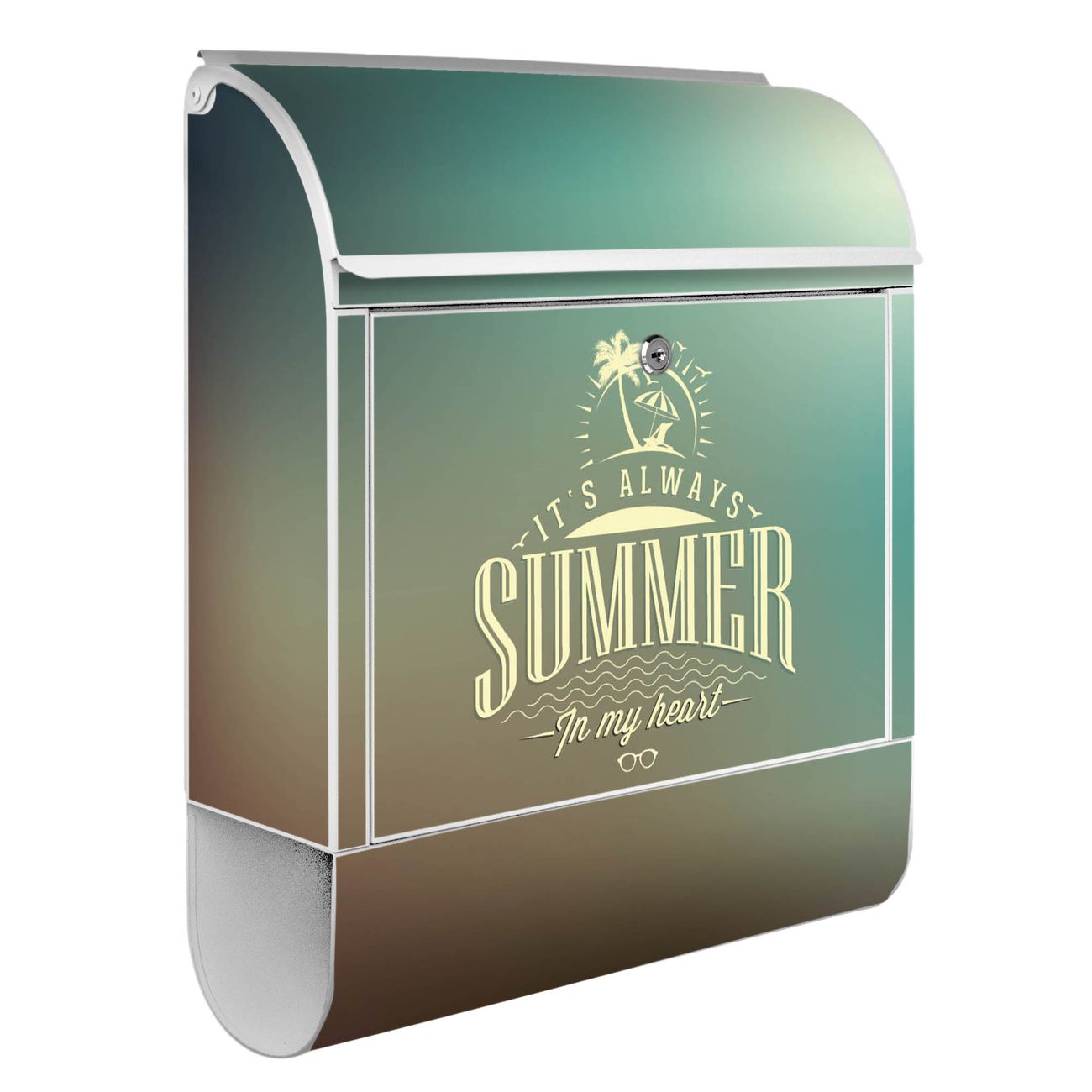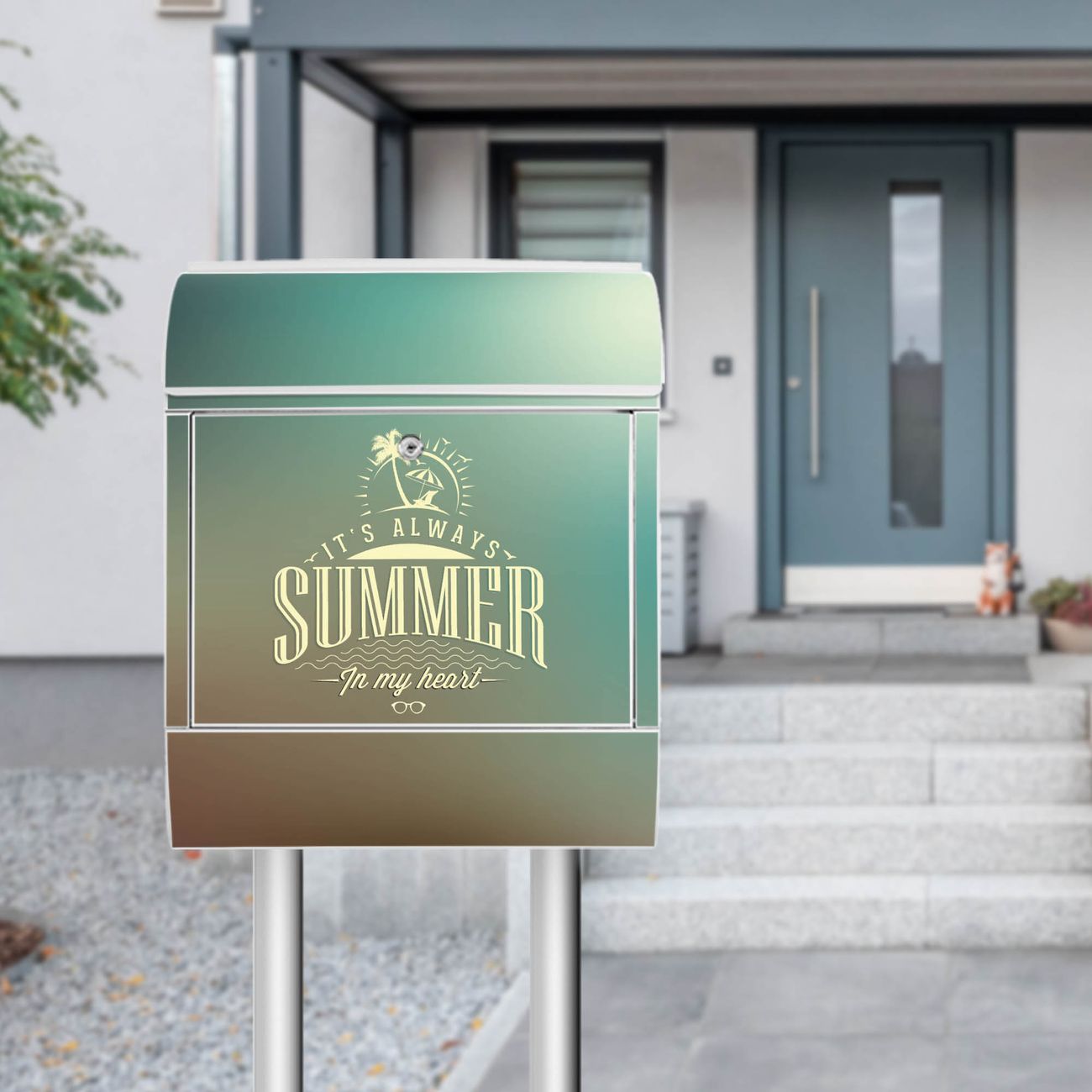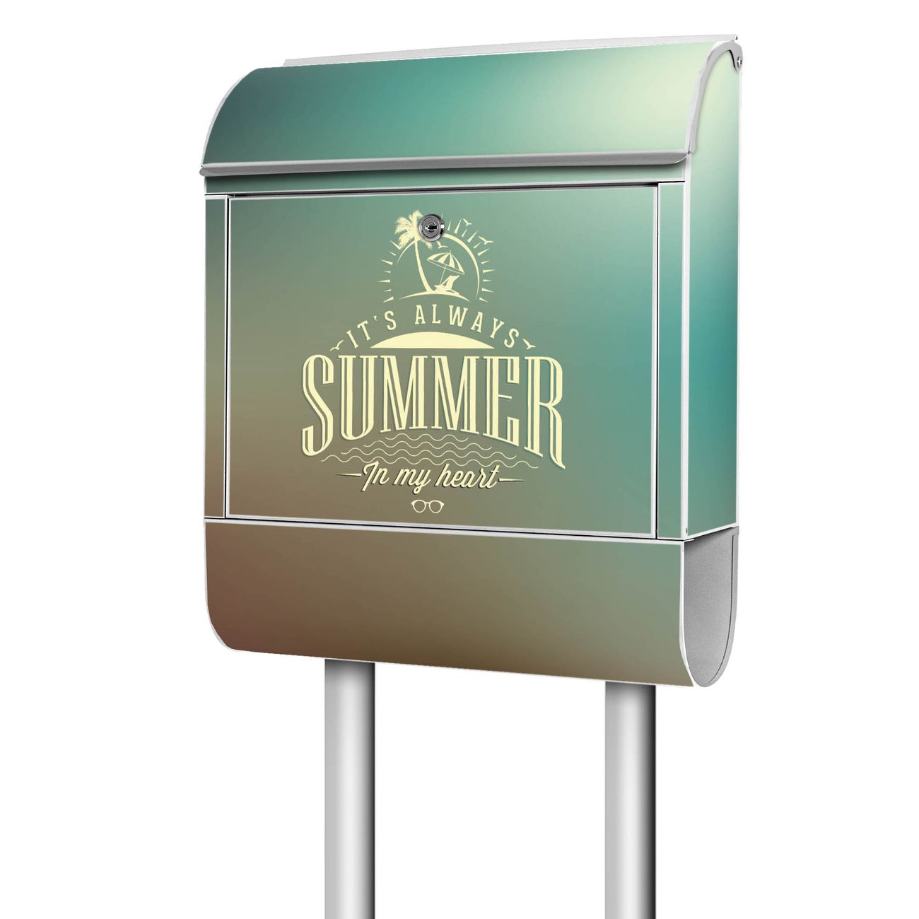 Der banjado Standbriefkasten mit Motiv Motiv Sommer Heart kombiniert großzügigen Stauraum mit modernem Design. Durch das geräumige Fach finden auch große A4-Sendungen problemlos Platz. Die integrierte Zeitungsrolle sorgt dafür, dass Tageszeitungen und Magazine separat und griffbereit untergebracht sind. Der pulverbeschichtete Standfuß ist farblich passend zum Briefkasten gestaltet und sorgt für ein stimmiges Gesamtbild. Mit dem individuellen Motiv setzen Sie einen optischen Akzent, der sowohl praktisch als auch dekorativ ist.
